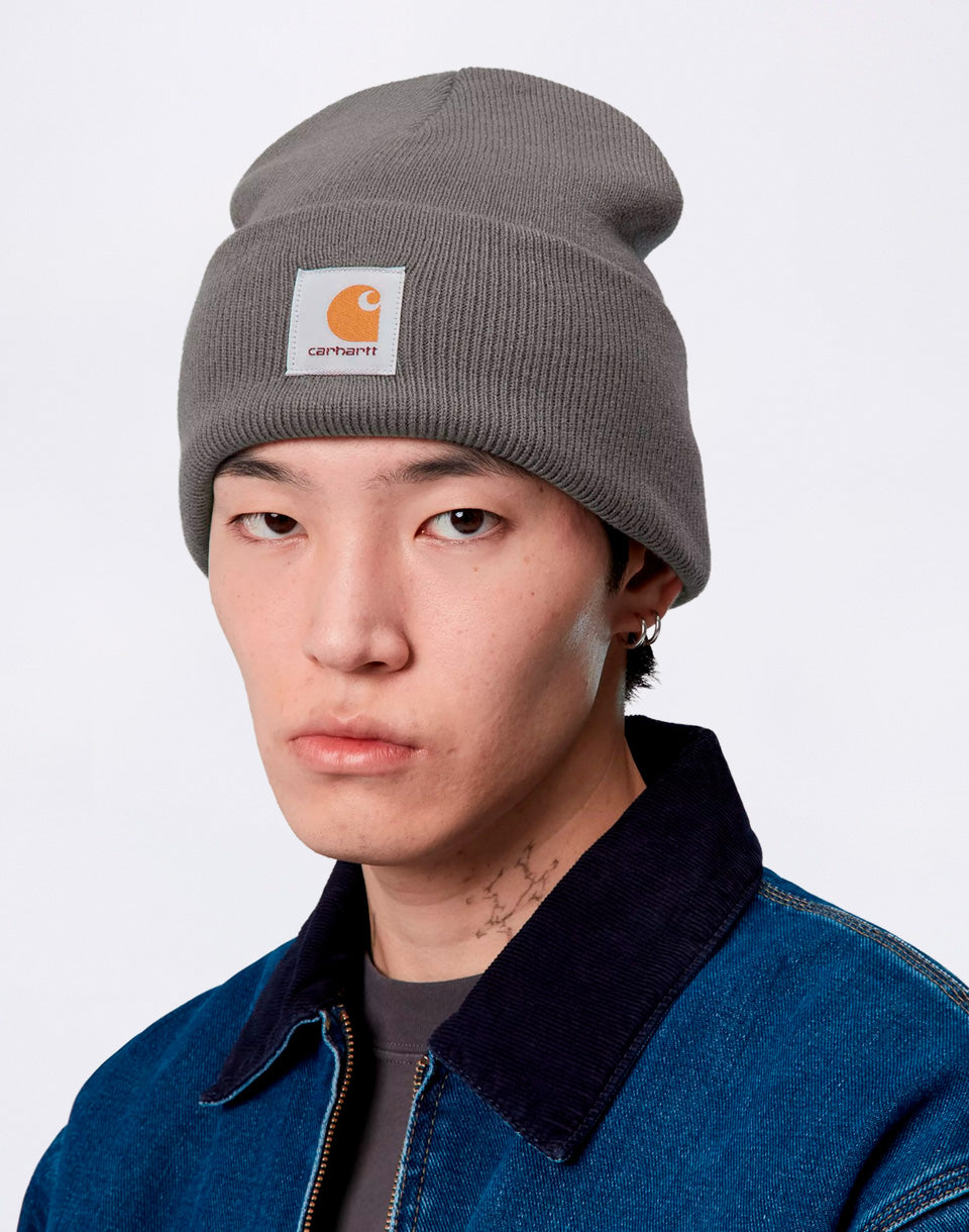 Carhartt WIP Acrylic Watch - a hat with Carhartt patch on his forehead and a folded bottom hem.