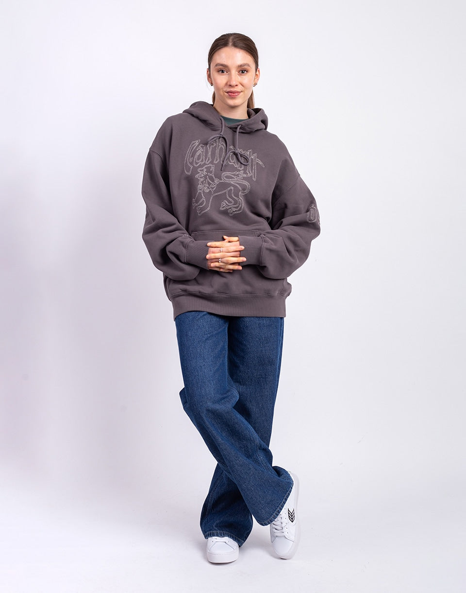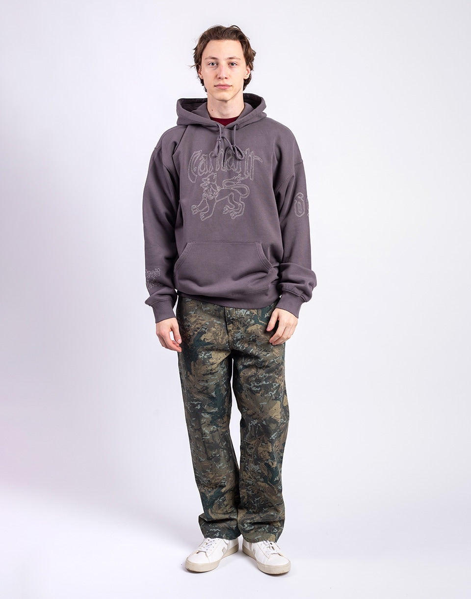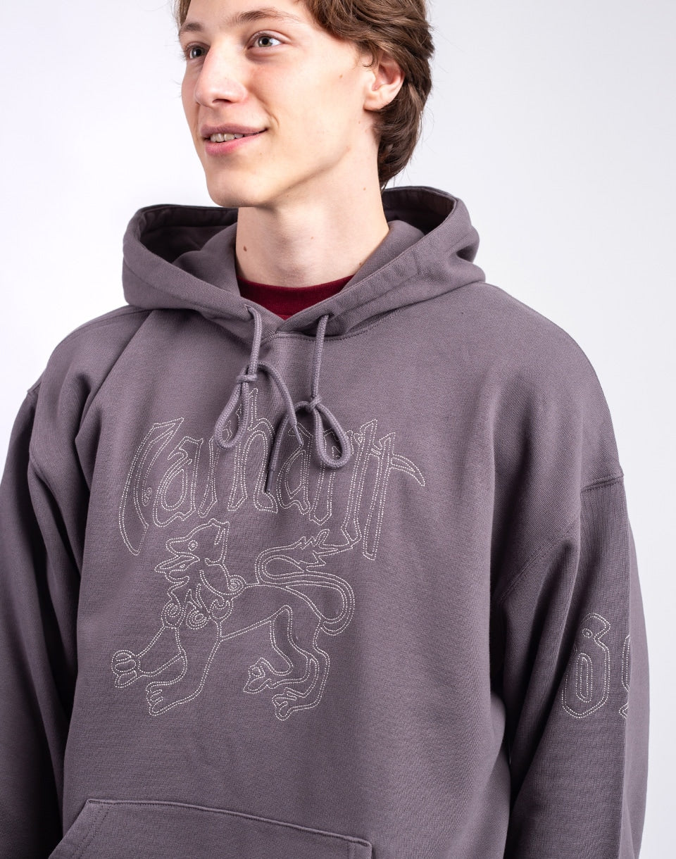 Carhartt WIP Hooded Hackwork Sweat - wide unisex hoodie with kangaroo pocket and large graphic embroidery on the chest and sleeves, backed by the famous streetwear brand.