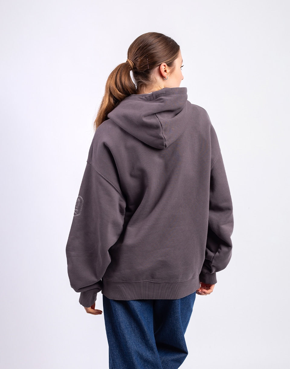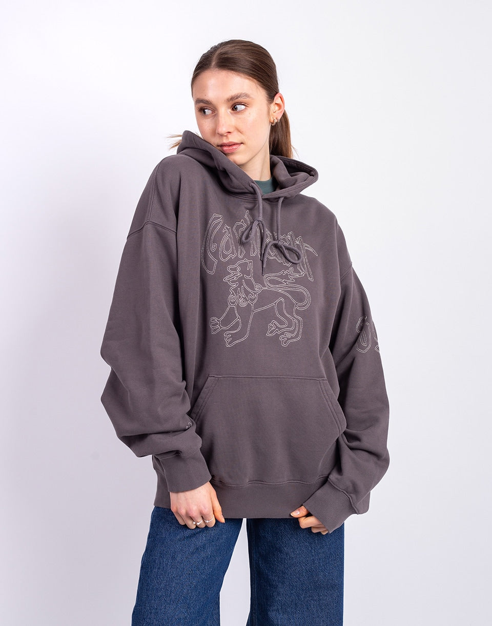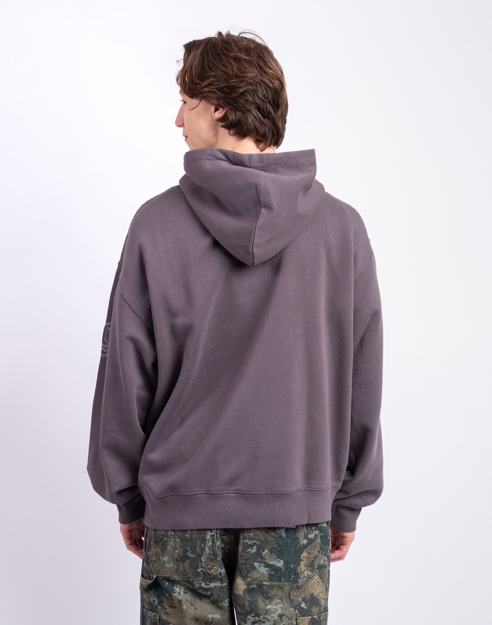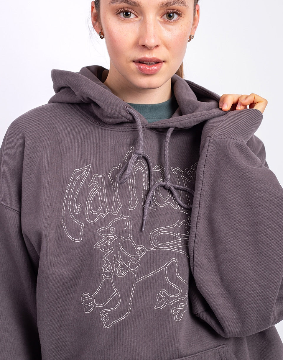 Carhartt WIP Hooded Hackwork Sweat - wide unisex hoodie with kangaroo pocket and large graphic embroidery on the chest and sleeves, backed by the famous streetwear brand.