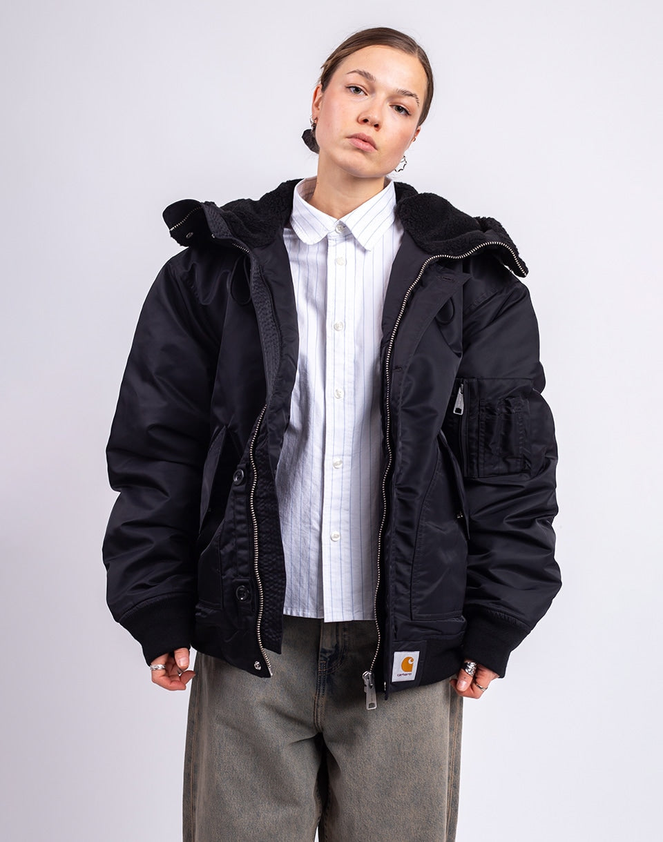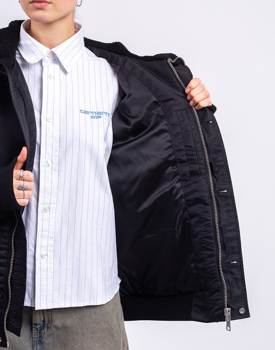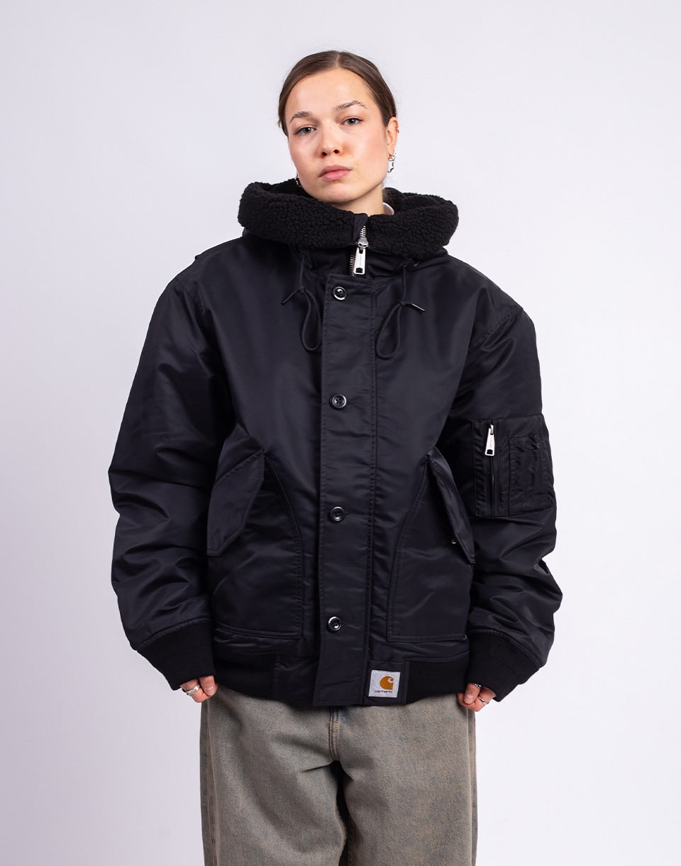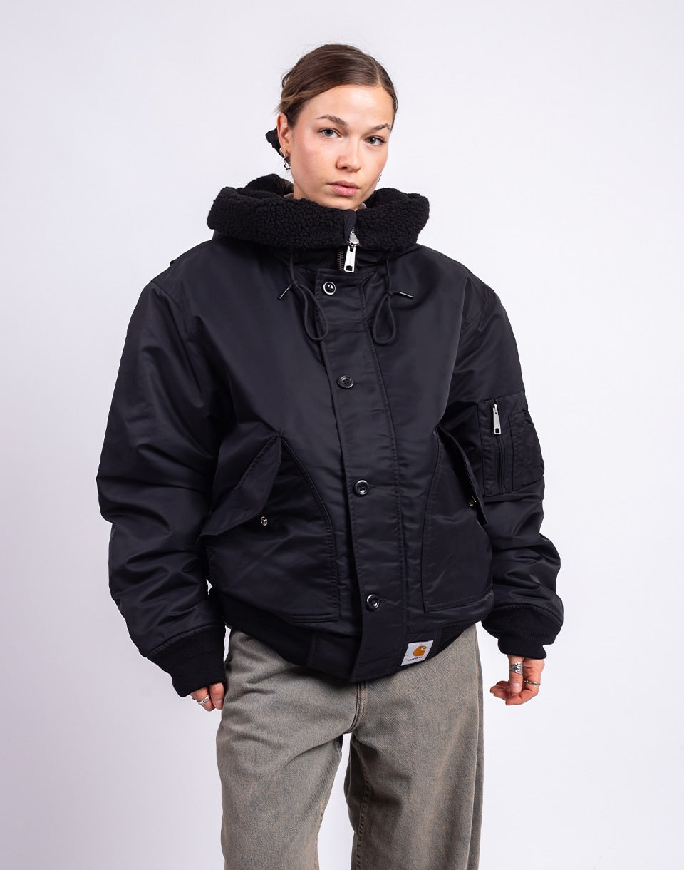 Carhartt WIP Hooded Oltera Bomber - jacket with a voluminous hood with zipper in the back and a fleece crepe in the front, which is made of water-repellent material.