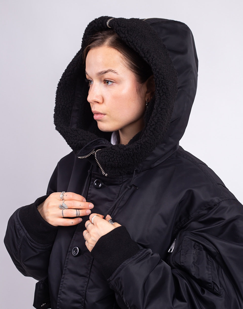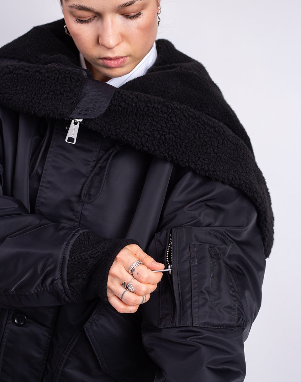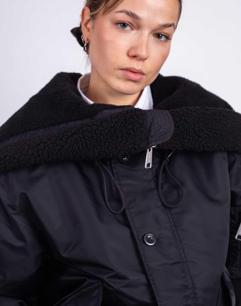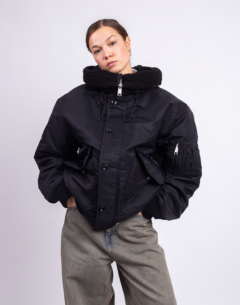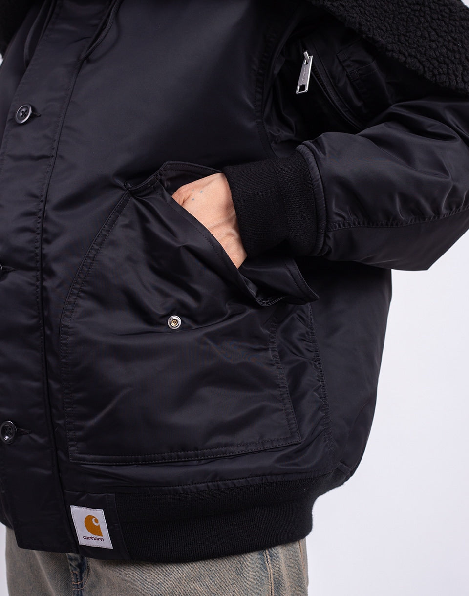 Carhartt WIP Hooded Oltera Bomber - jacket with a voluminous hood with zipper in the back and a fleece crepe in the front, which is made of water-repellent material.