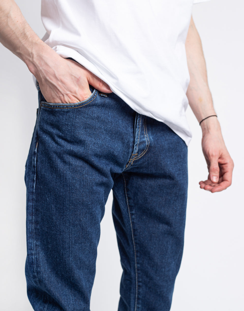 Carhartt WIP Klondike - jean élégant pour hommes en coton biologique dans une coupe légèrement fuselée avec une taille basse.