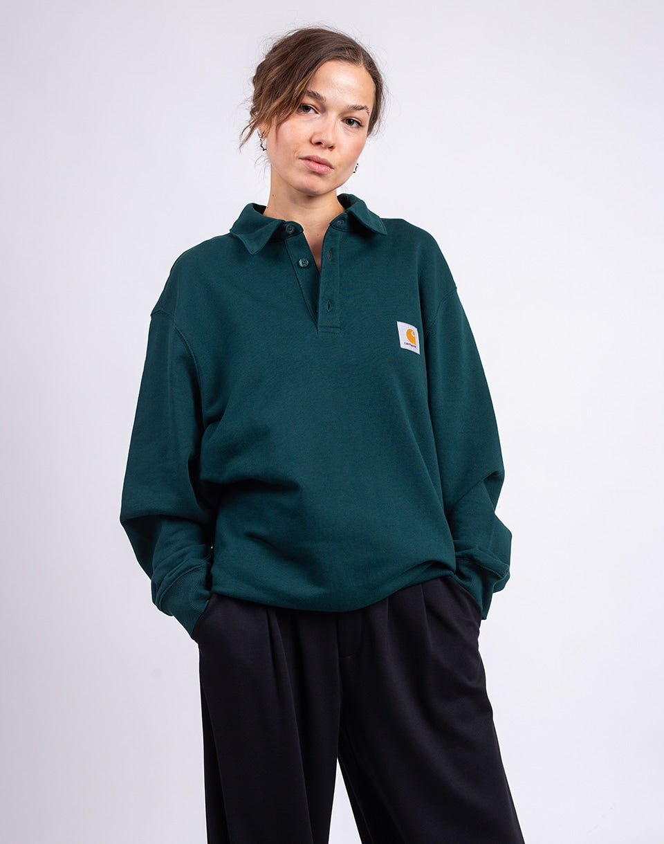 Carhartt WIP Polo Sweat - loose-fitting sweatshirt made of uncombed cotton fabric with a coarse texture with a collar.