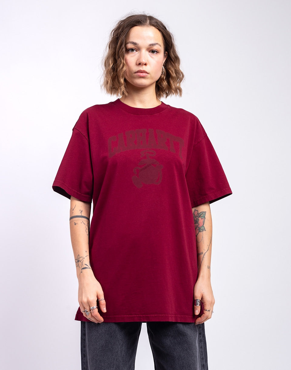 Carhartt WIP S/S Faded Pond Corps T-Shirt - loose-fitting organic cotton T-shirt with a distinctive "worn-in" look thanks to a heavy stone-wash finish. The pleasantly soft jersey is complemented by a graphic print on the chest.