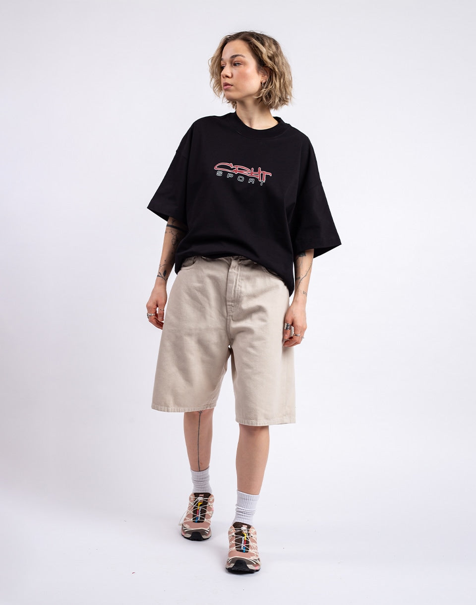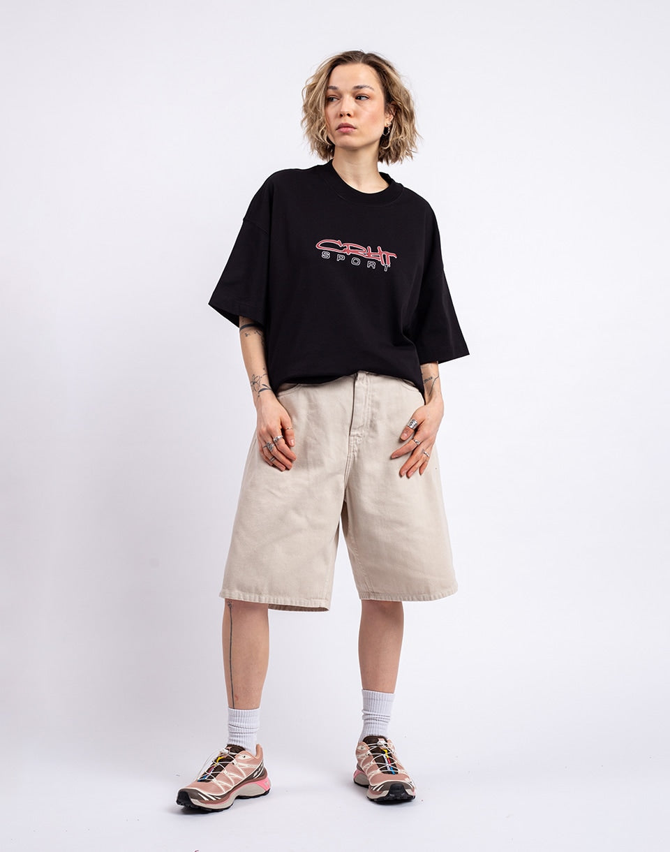 Carhartt WIP W' Brandon Short - Short pour femme à coupe ample, fabriqué en sergé de coton robuste et décoré de surpiqûres contrastées et d'une étiquette carrée tissée.