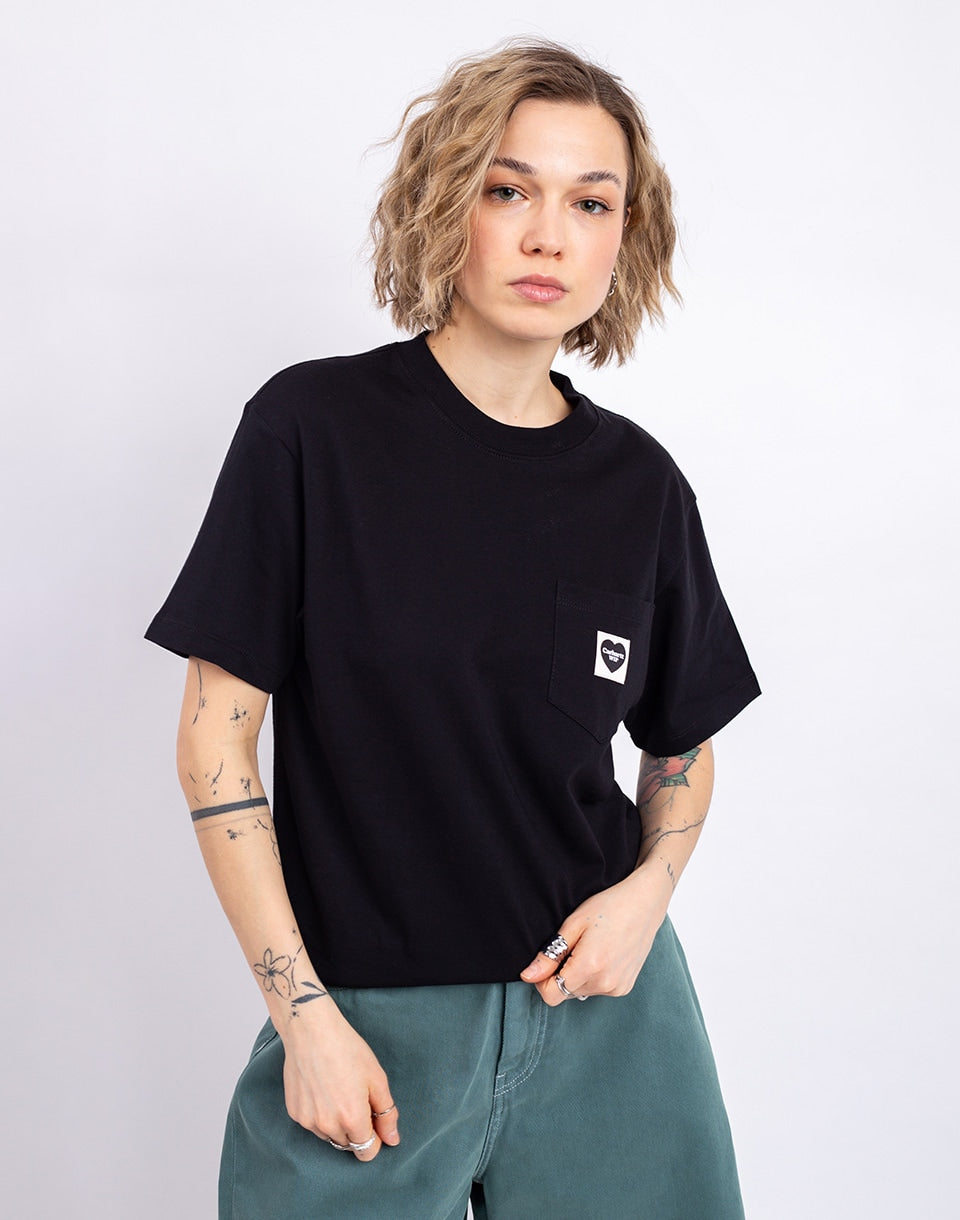 T-shirt Carhartt WIP W' S/S Pocket Heart - un t-shirt pour femme doté d'une poche poitrine classique avec une étiquette streetwear.