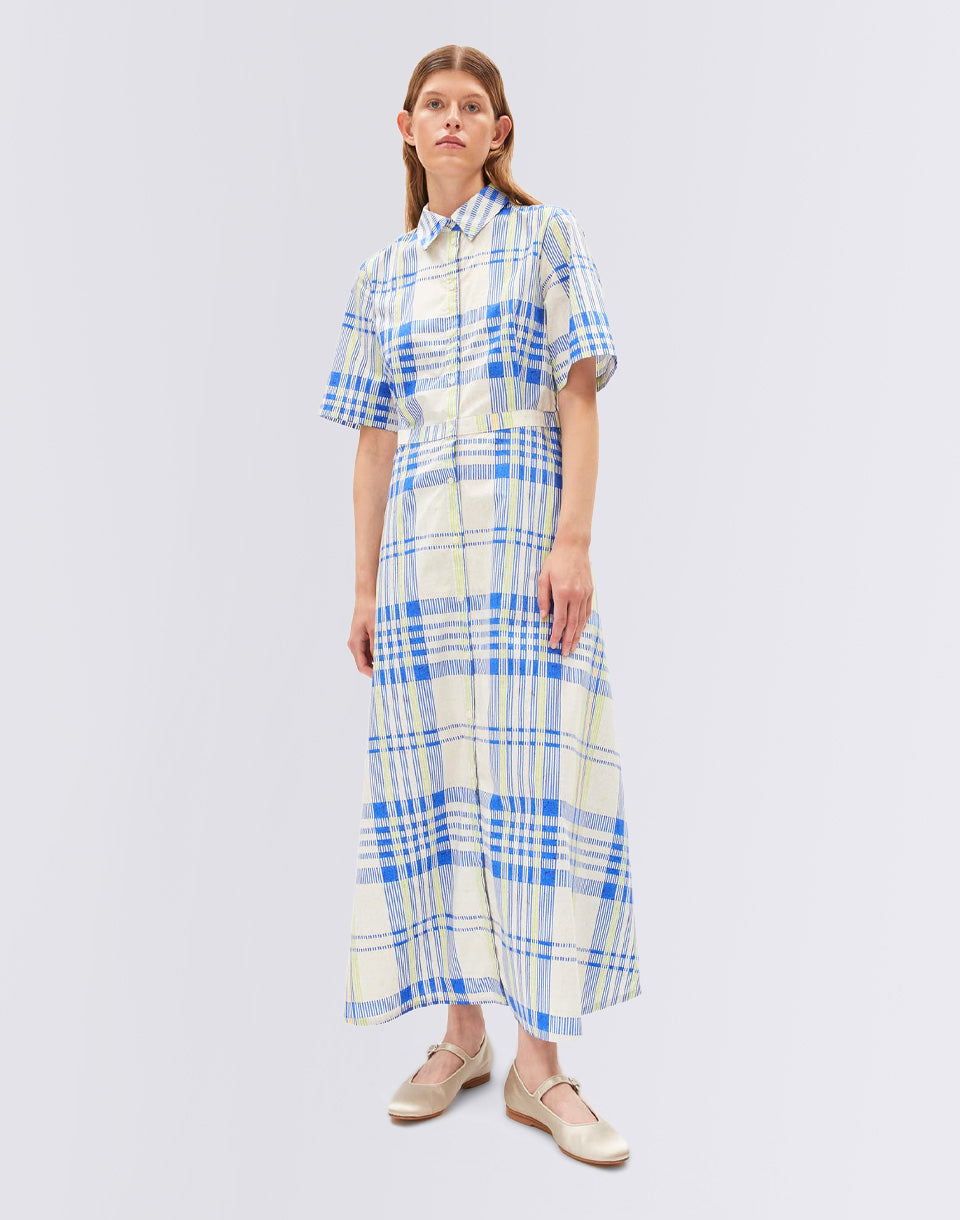 Armedangels Loretaana College Check - Une robe de chemise maxi pour femmes assez faite avec un motif à carreaux en coton biologique doux.