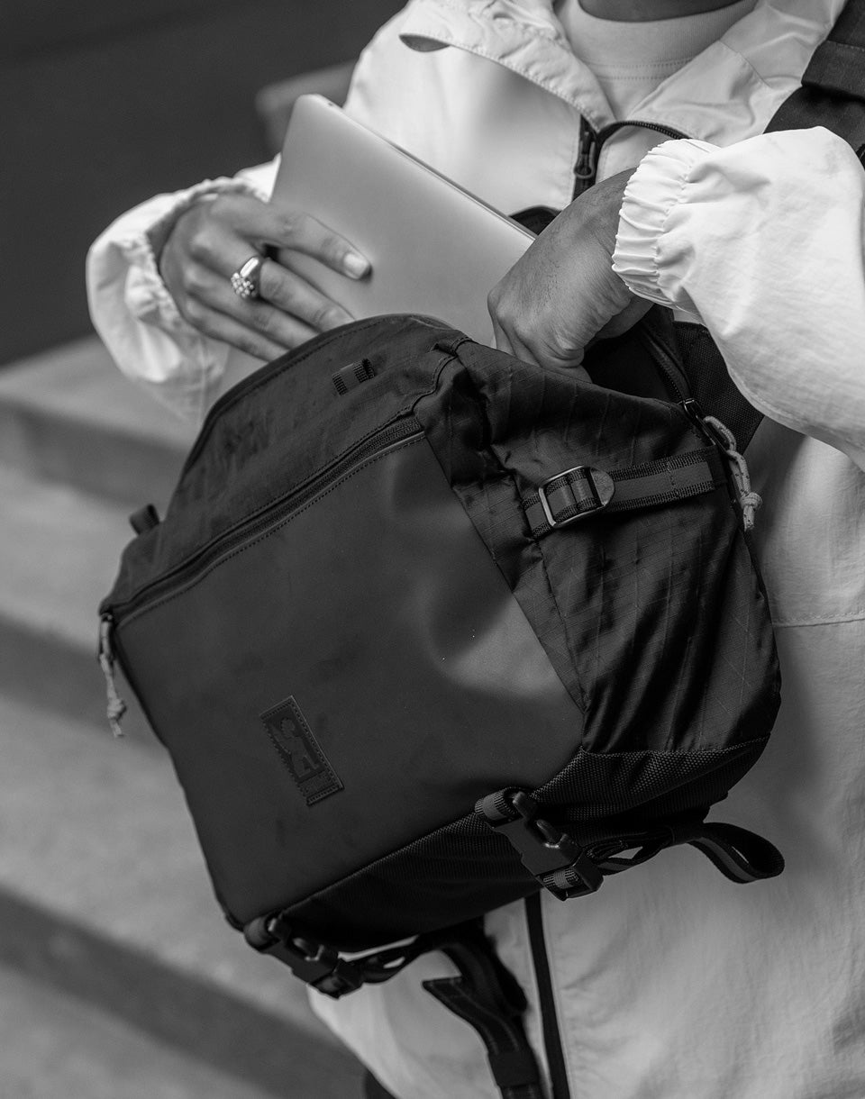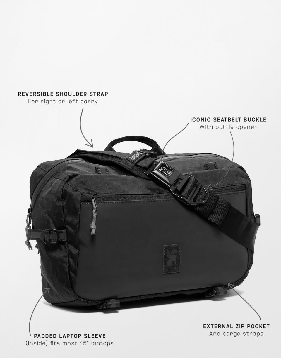 Chrome Industries Kadet Max – un sac bandoulière plus grand, idéal entre le sac bandoulière et le sac messager, conçu pour un transport quotidien. De plus, sa bandoulière astucieuse le rend idéal pour les balades à vélo.