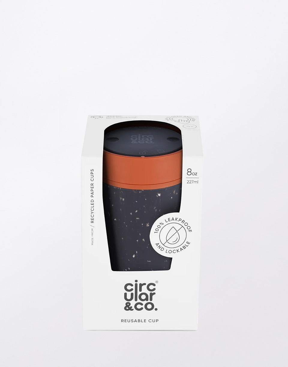 Tasse circulaire 227 ml - une tasse de café réutilisable à base de tasses en papier jetables recyclées, qui est l'idée derrière la transformation des tasses jetables et leur transformation en une tasse que vous pouvez utiliser pendant longtemps.
