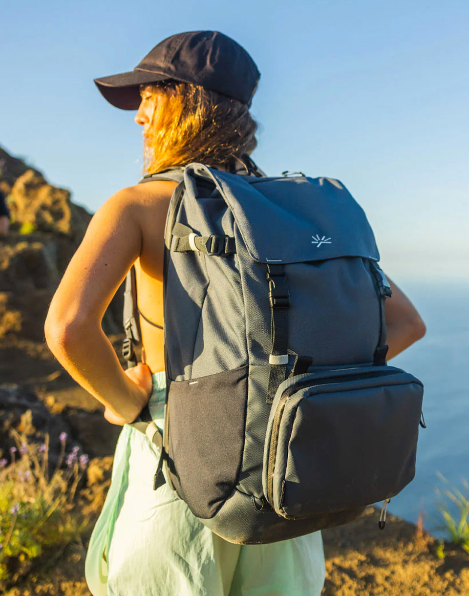 TropicFeel Shell - un sac à dos de voyage innovant, modulaire et global polyvalent qui ne vous prendra pas par surprise lorsque vous êtes sur la route. Grâce au système modulaire sophistiqué, le volume peut être élargi de différentes manières (de 22 à 40 litres) et vous pouvez adapter le sac à dos à vos besoins spécifiques avec des accessoires supplémentaires, que vous pouvez également trouver sur notre site Web. Par exemple, c'est ami avec le pratique Fidlock® Toitry Sac, le spécial Fidlock® Pou Ch et le intelligent Garde-robe Système de garde-robe.