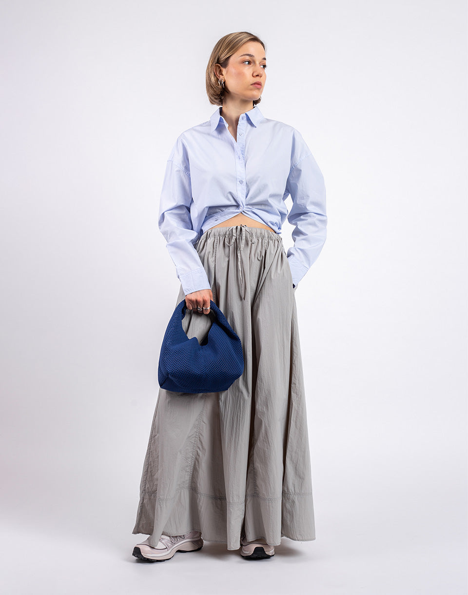 ECOALF Ocean Tika Mini – un petit sac à main en polyamide 100 % recyclé, issu du recyclage textile, contribuant ainsi à l'économie circulaire. Son design intemporel et sa poignée torsadée lui confèrent une allure sophistiquée et élégante.