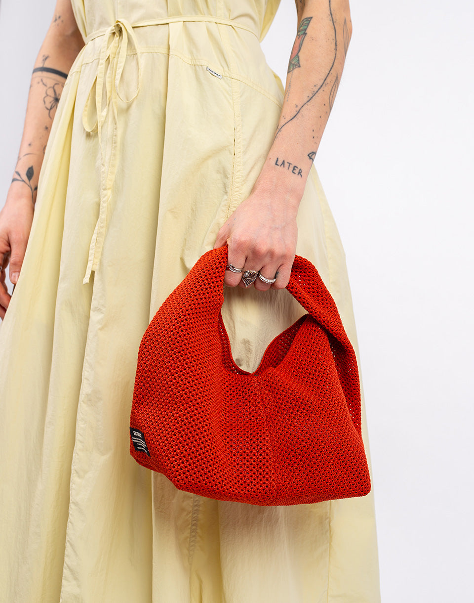 ECOALF Ocean Tika Mini – un petit sac à main en polyamide 100 % recyclé, issu du recyclage textile, contribuant ainsi à l'économie circulaire. Son design intemporel et sa poignée torsadée lui confèrent une allure sophistiquée et élégante.