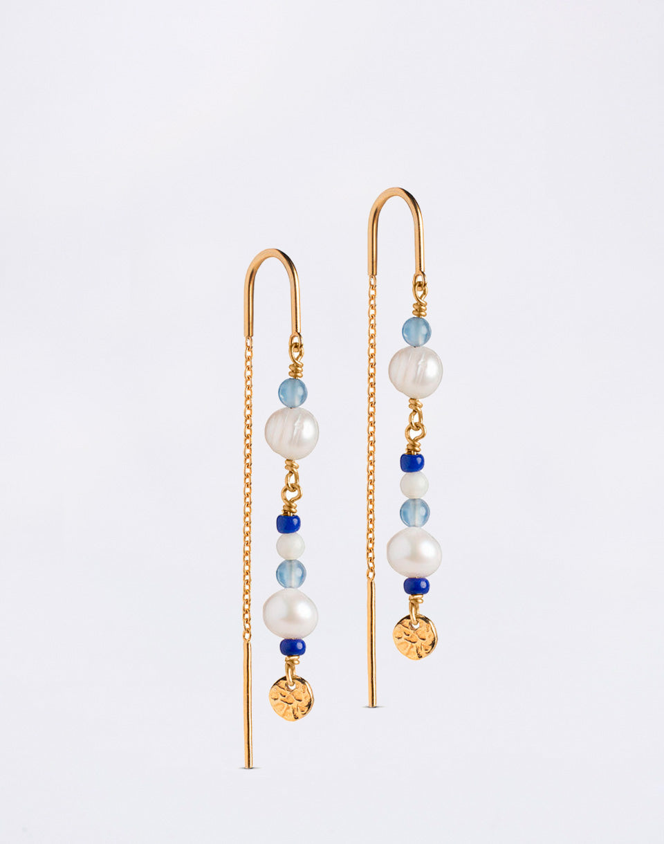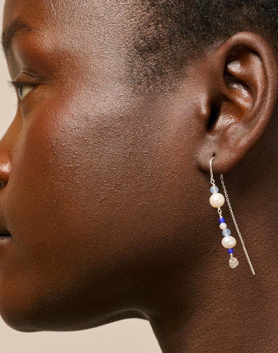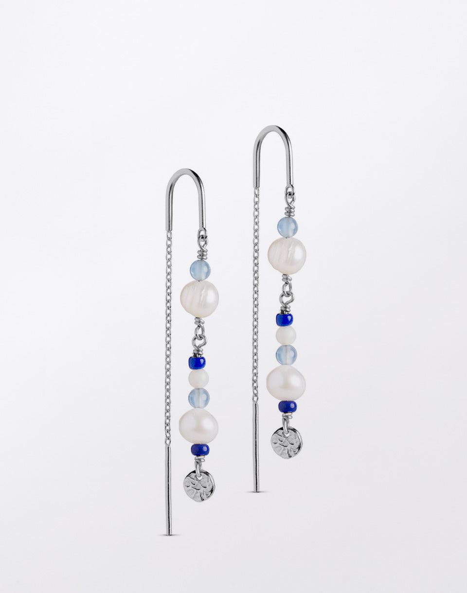 Boucles d'oreilles ENAMEL Copenhagen, Sofia - boucles d'oreilles chaîne avec personnalité et charme féminin, en argent recyclé avec strass et perles, seront votre accessoire élégant.