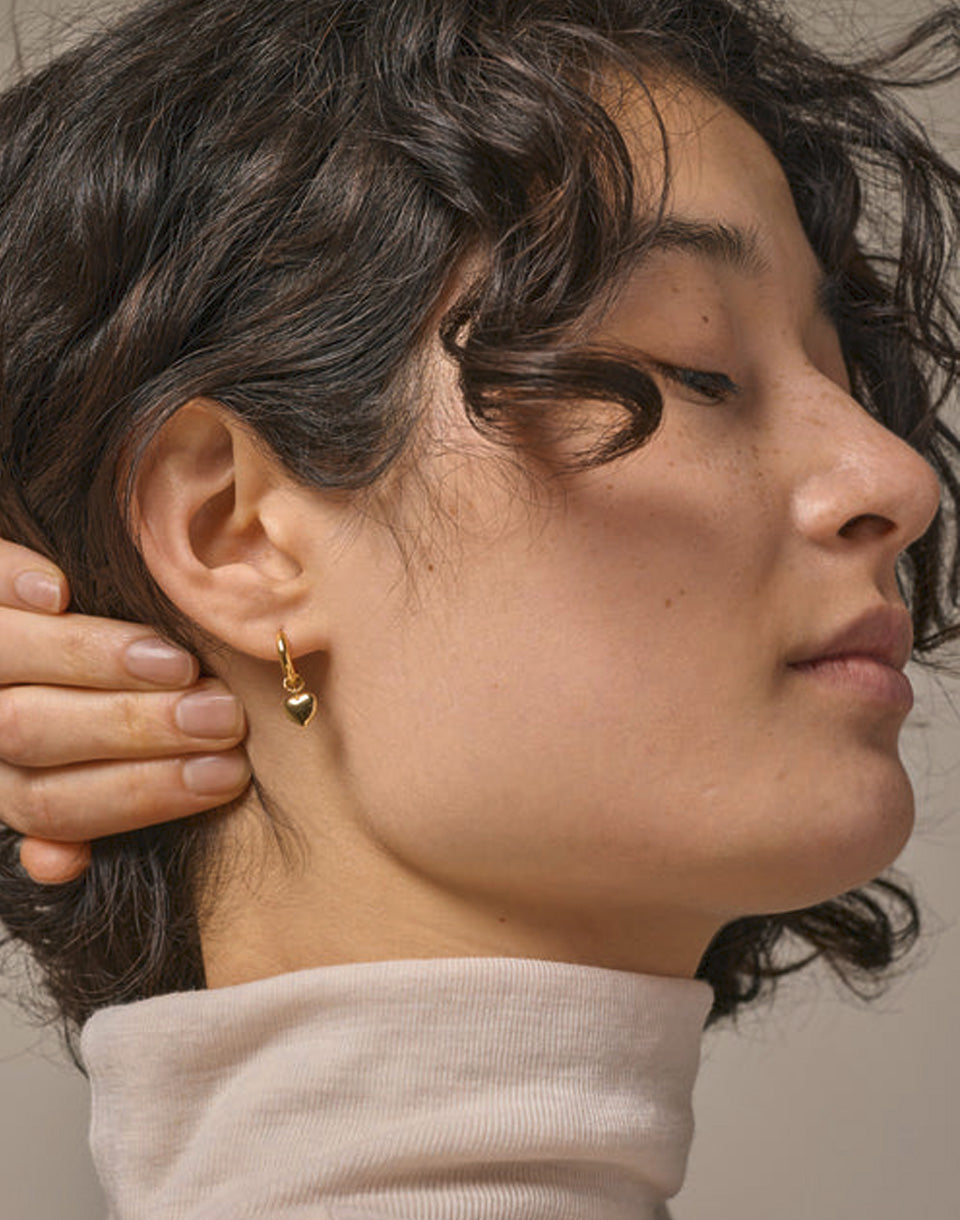 ENAMEL Copenhagen Hoops, Amore - gold-plated round earrings with a distinctive shine and a heart-shaped pendant.