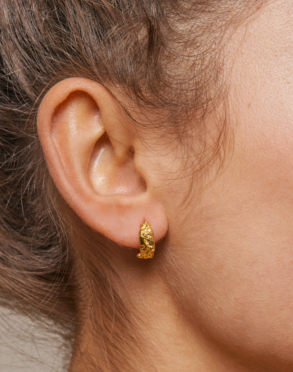 Créoles ENAMEL Copenhagen, Nela - boucles d'oreilles épaisses et audacieuses avec une finition brute, fabriquées en argent sterling recyclé avec une finition plaquée or qui couvre doucement et flatteuse le lobe de l'oreille.