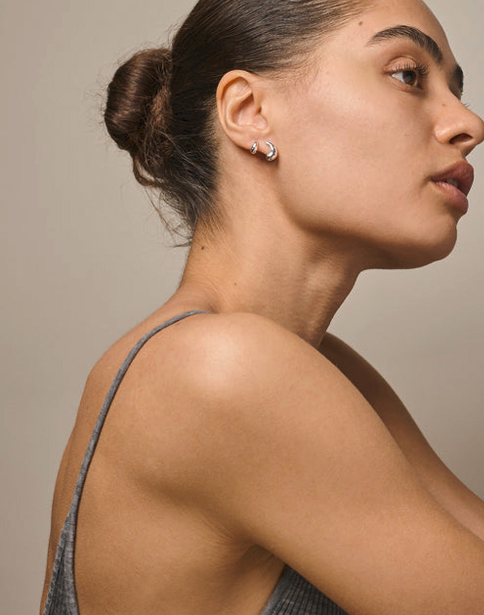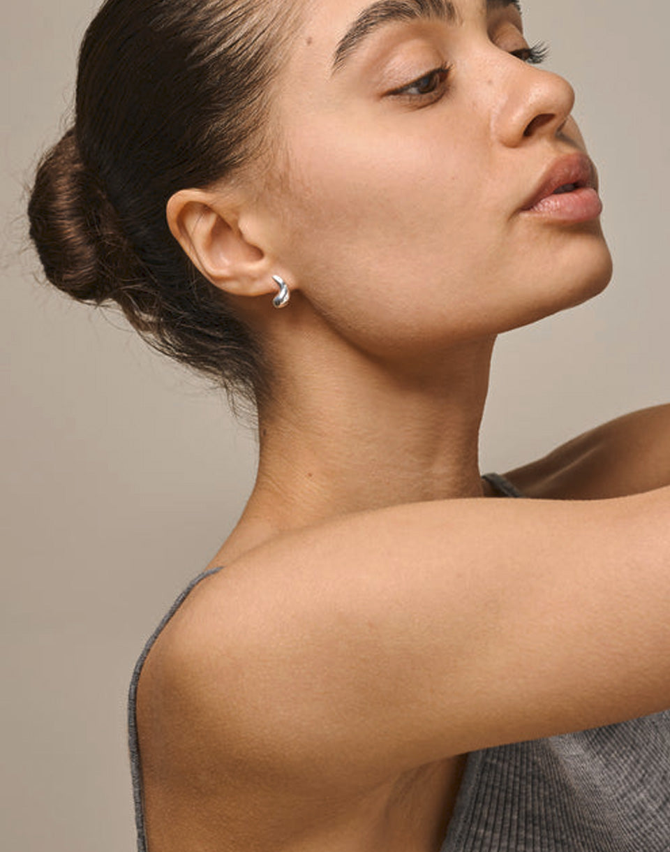 ENAMEL Copenhagen Studs, Nima - small silver elegant earrings in a soft organic shape with a gently undulating surface.