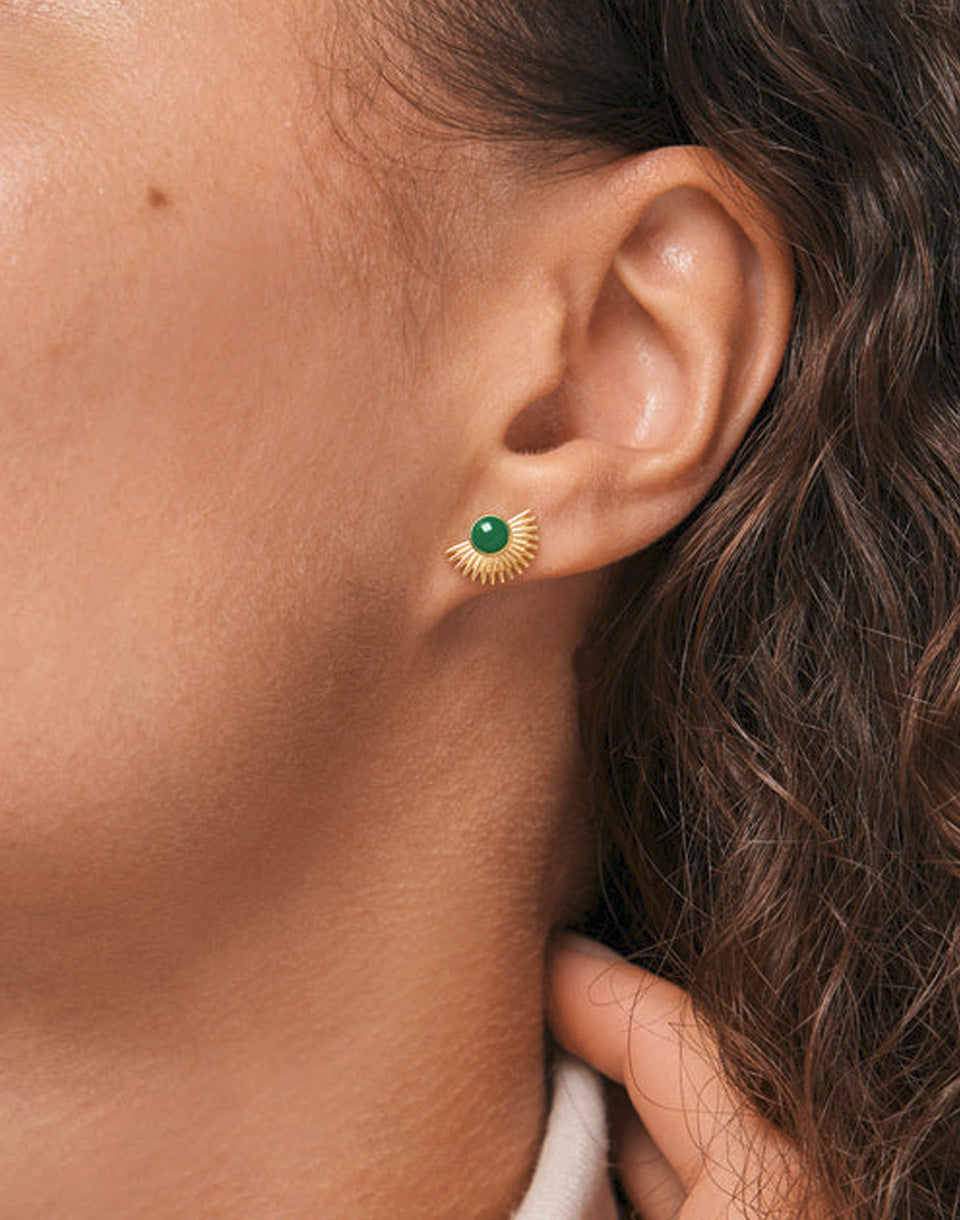 ENAMEL Copenhagen Studs, Soleil - gold-plated earrings in the shape of the sun with a coral centre that evoke bright summer evenings.