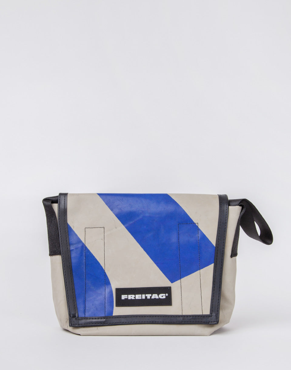 Freitag F11 Lassie - Un messager à la main suisse unique à base de bâches de camion d'occasion, de ceintures de sécurité et de tubes à vélo.