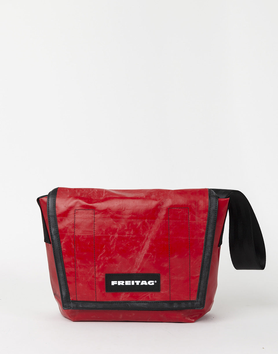 Freitag F11 Lassie - Un messager à la main suisse unique à base de bâches de camion d'occasion, de ceintures de sécurité et de tubes à vélo.