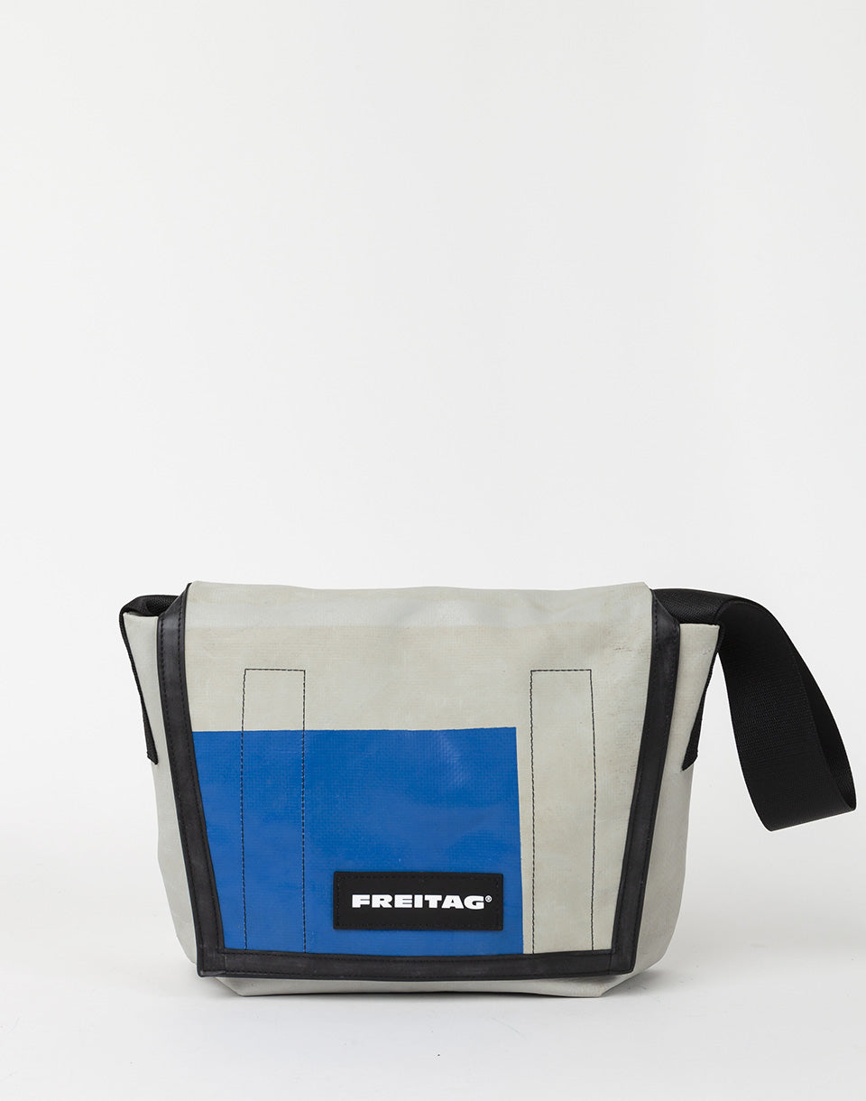 Freitag F11 Lassie - Un messager à la main suisse unique à base de bâches de camion d'occasion, de ceintures de sécurité et de tubes à vélo.