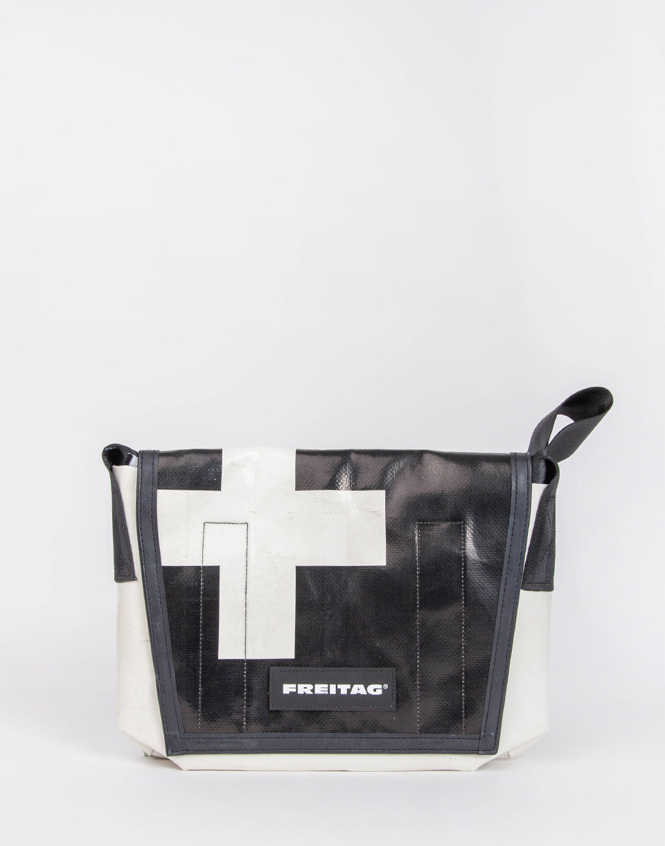 Freitag F11 Lassie - Un messager à la main suisse unique à base de bâches de camion d'occasion, de ceintures de sécurité et de tubes à vélo.