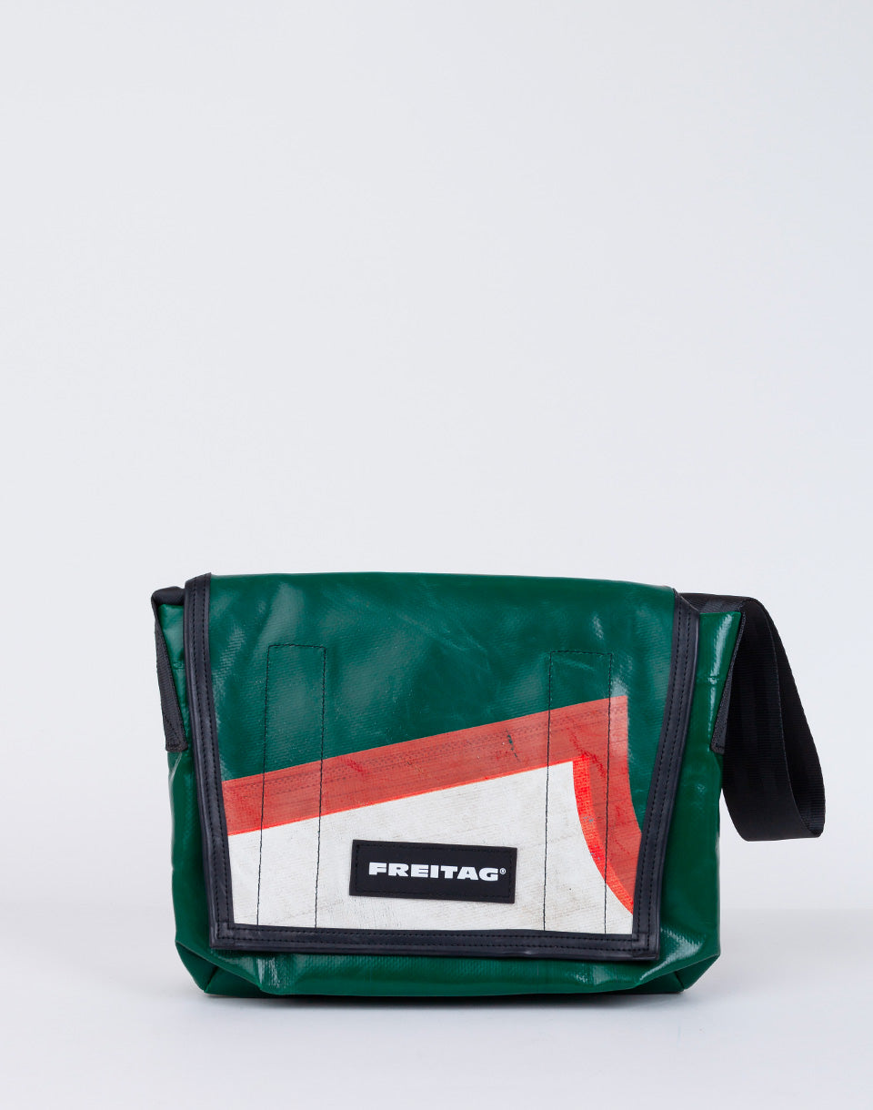 Freitag F11 Lassie - Un messager à la main suisse unique à base de bâches de camion d'occasion, de ceintures de sécurité et de tubes à vélo.