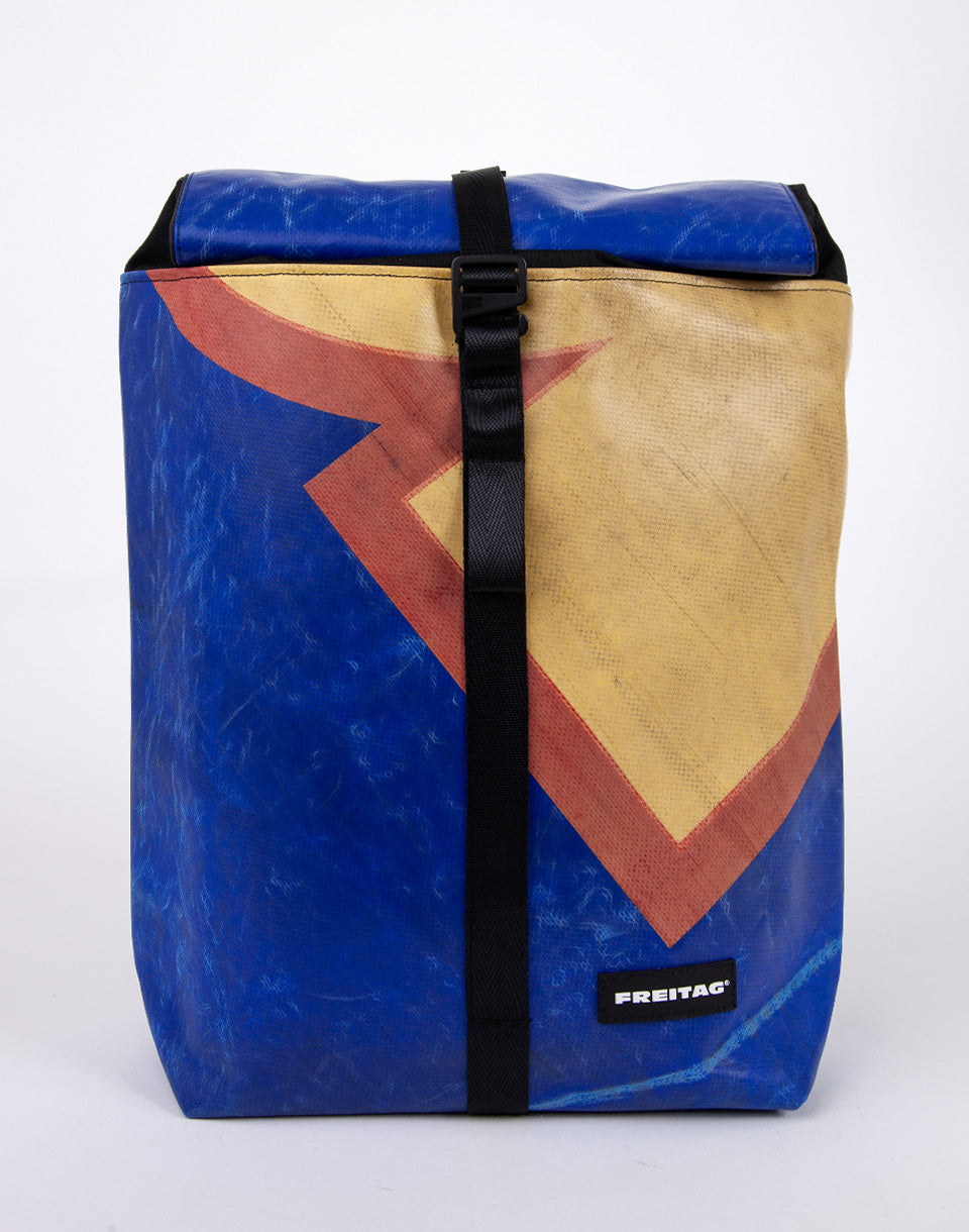 Freitag F155 Clapton - Un sac à dos unique fait à la main fabriqué à partir de bâches de camion d'occasion, de ceintures de sécurité et de bouteilles d'animaux recyclées.