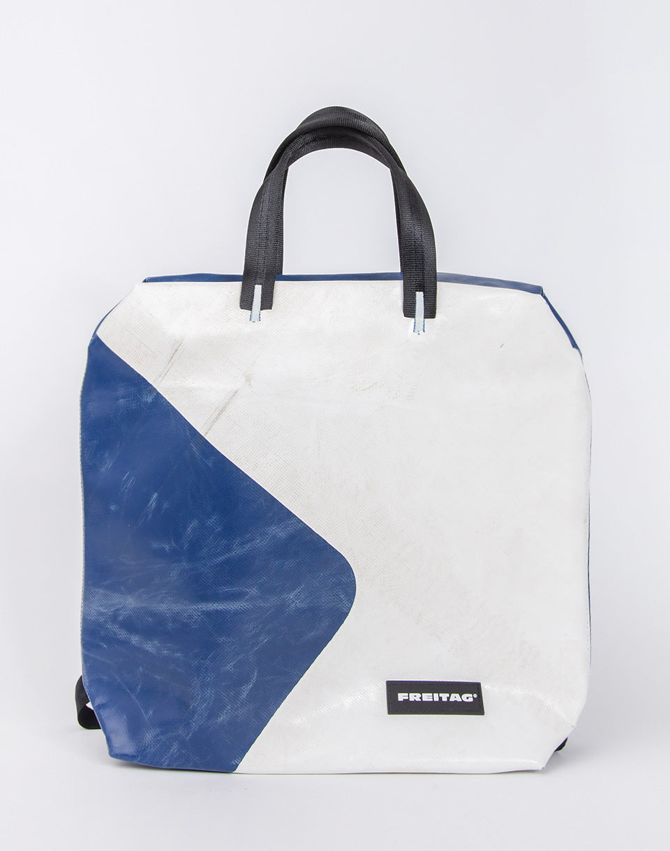 Freitag F201 Pete - Un sac à dos de ville unique à base de bâches de camion et de ceintures de sécurité d'occasion.