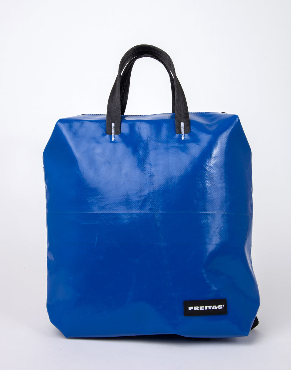Freitag F201 Pete - Un sac à dos de ville unique à base de bâches de camion et de ceintures de sécurité d'occasion.