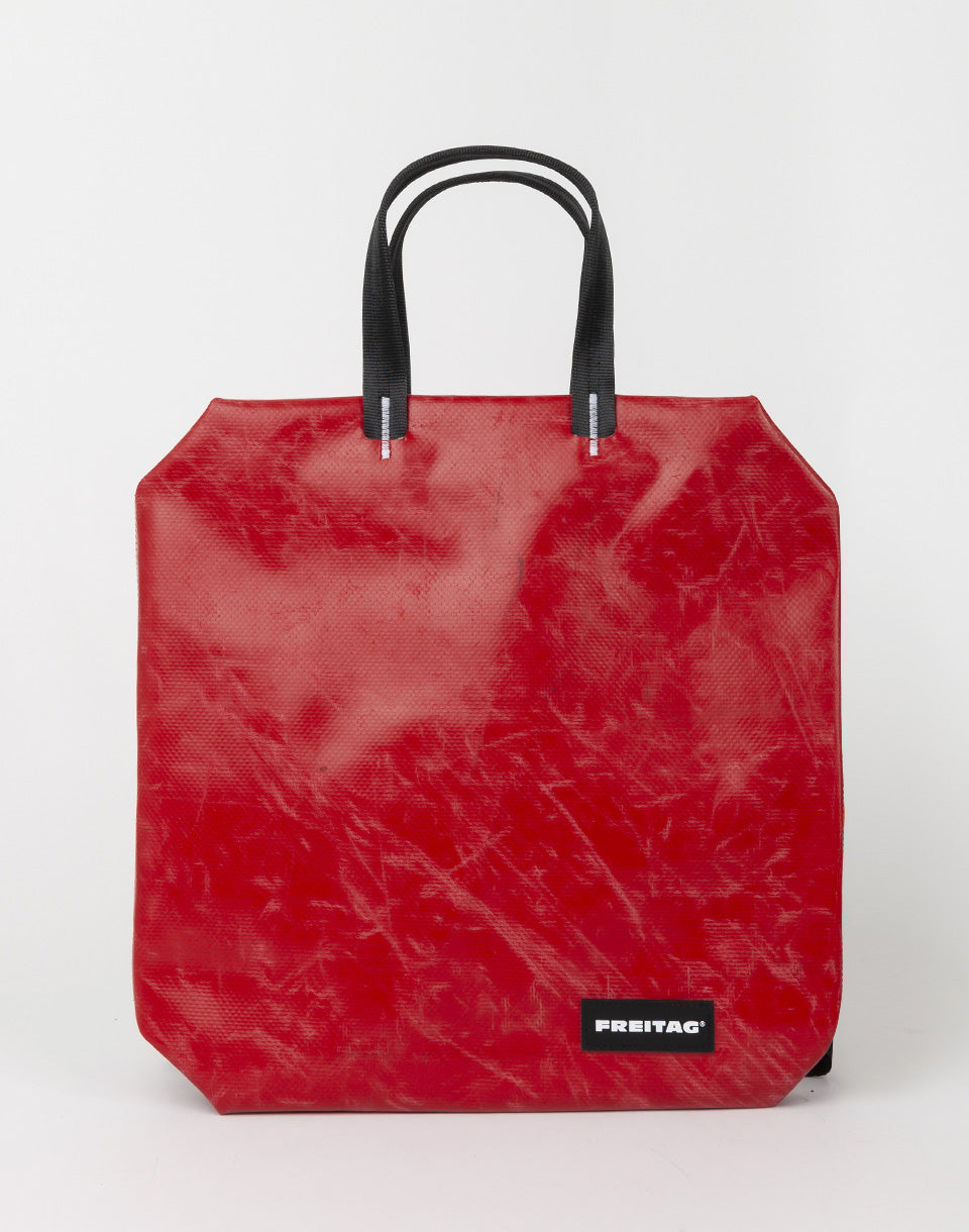 Freitag F201 Pete - Un sac à dos de ville unique à base de bâches de camion et de ceintures de sécurité d'occasion.