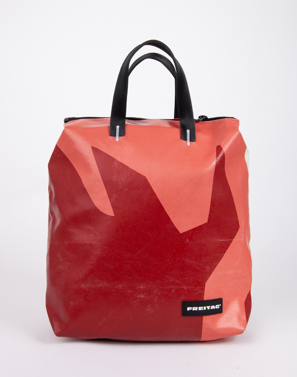 Freitag F201 Pete - Un sac à dos de ville unique à base de bâches de camion et de ceintures de sécurité d'occasion.