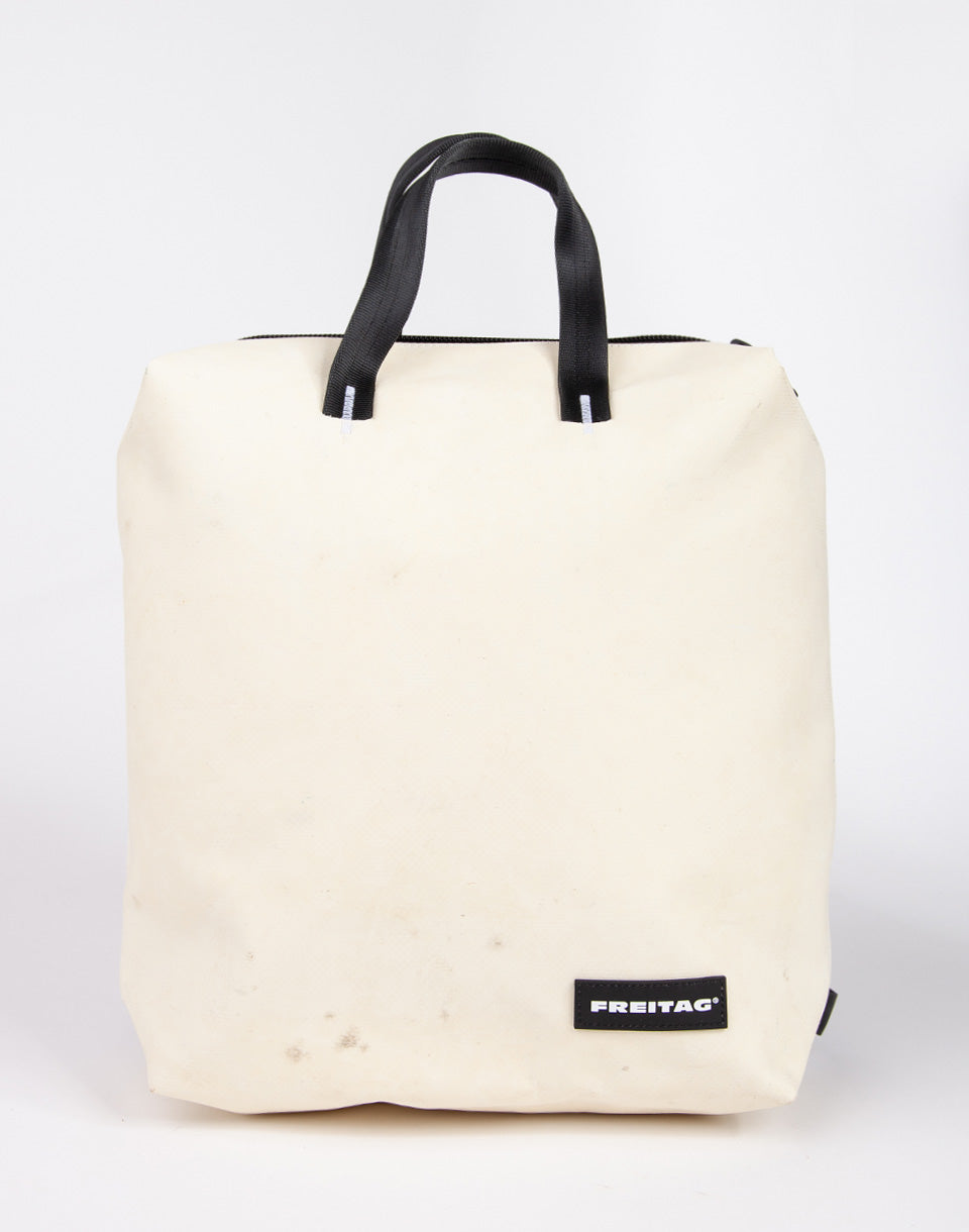 Freitag F201 Pete - Un sac à dos de ville unique à base de bâches de camion et de ceintures de sécurité d'occasion.