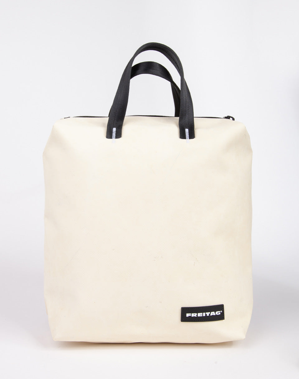 Freitag F201 Pete - Un sac à dos de ville unique à base de bâches de camion et de ceintures de sécurité d'occasion.