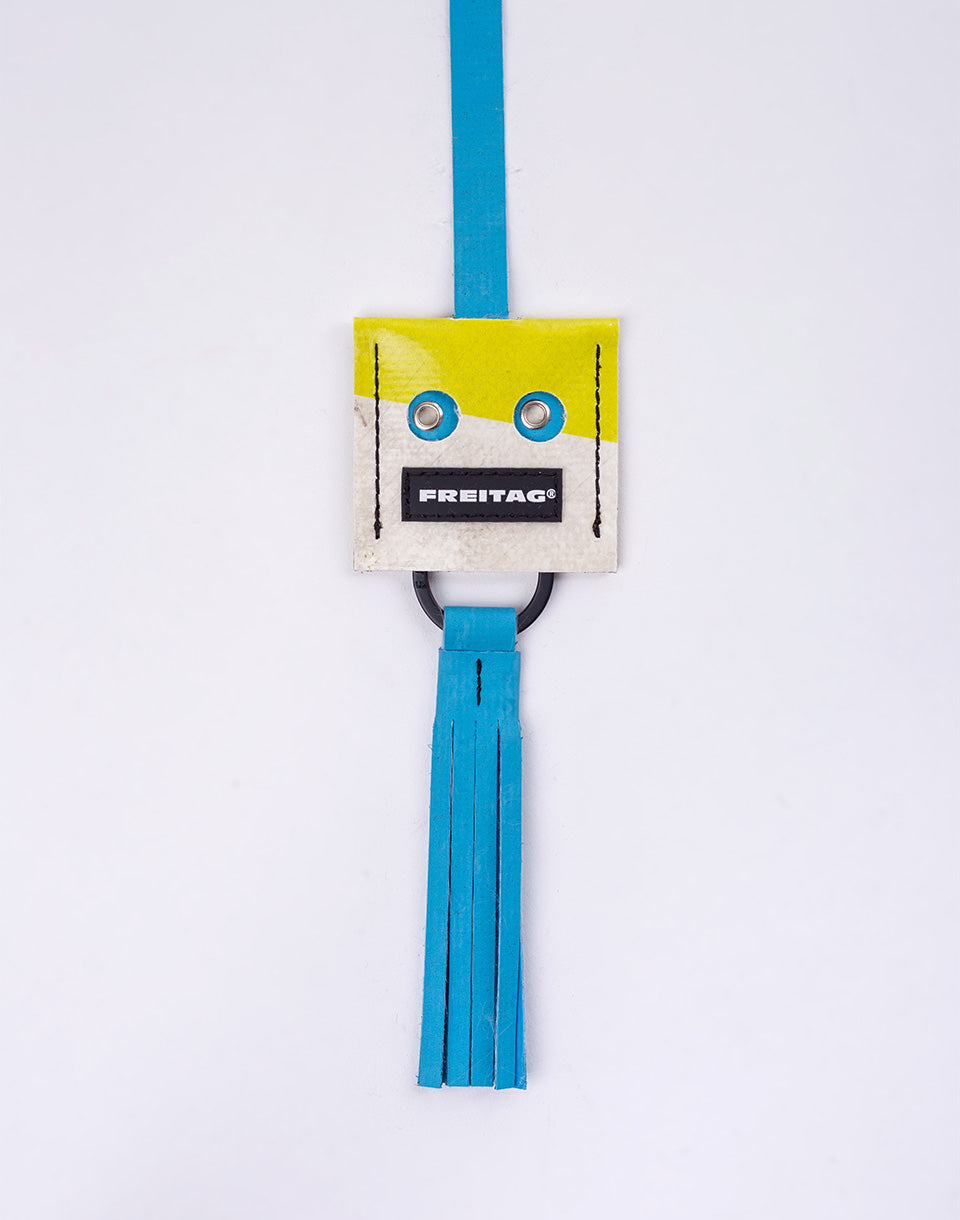 FREITAG Face - a playful and durable pendant that will take you anywhere. Each piece has its own expression and is made from recycled truck tarpaulin.