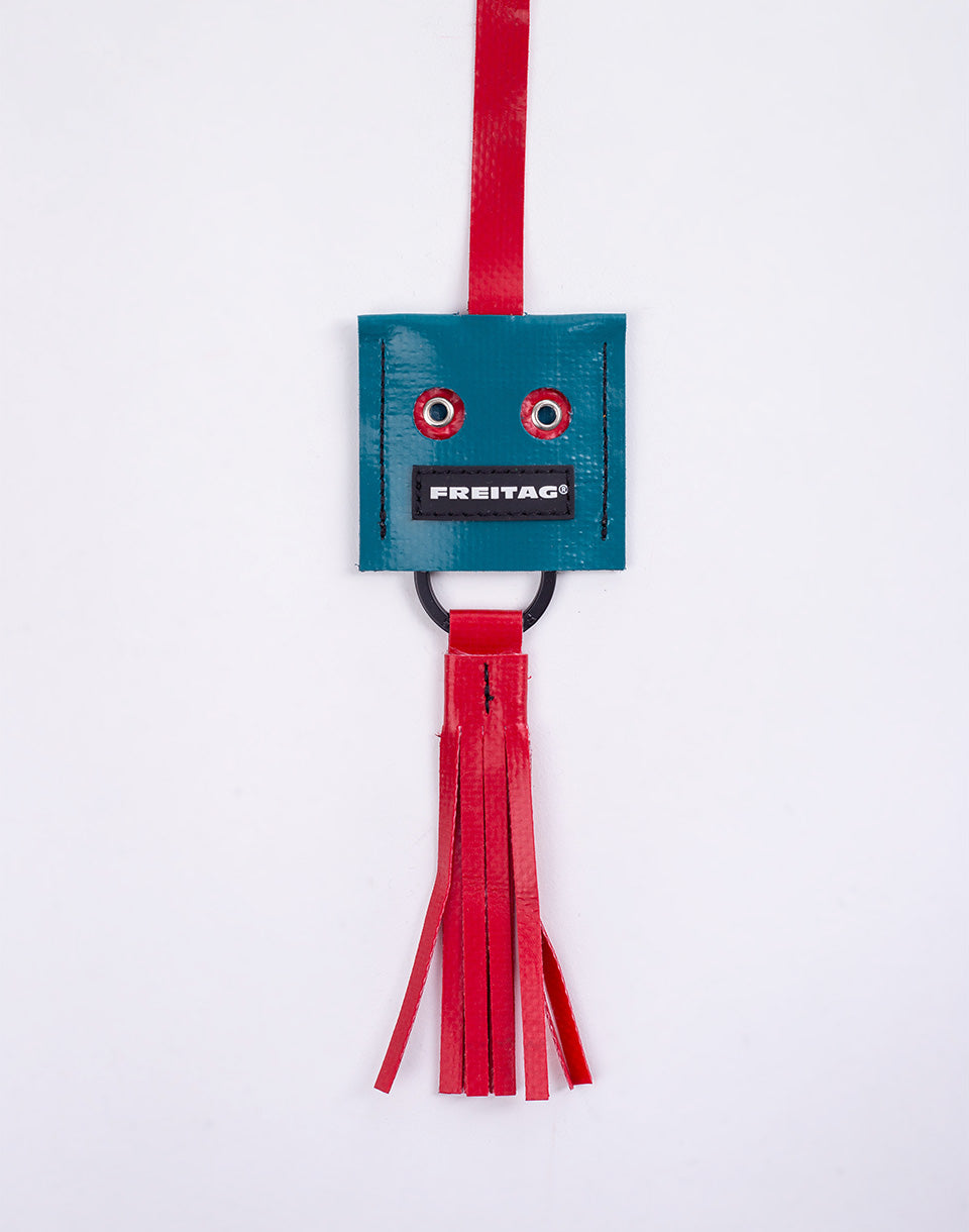 FREITAG Face - a playful and durable pendant that will take you anywhere. Each piece has its own expression and is made from recycled truck tarpaulin.