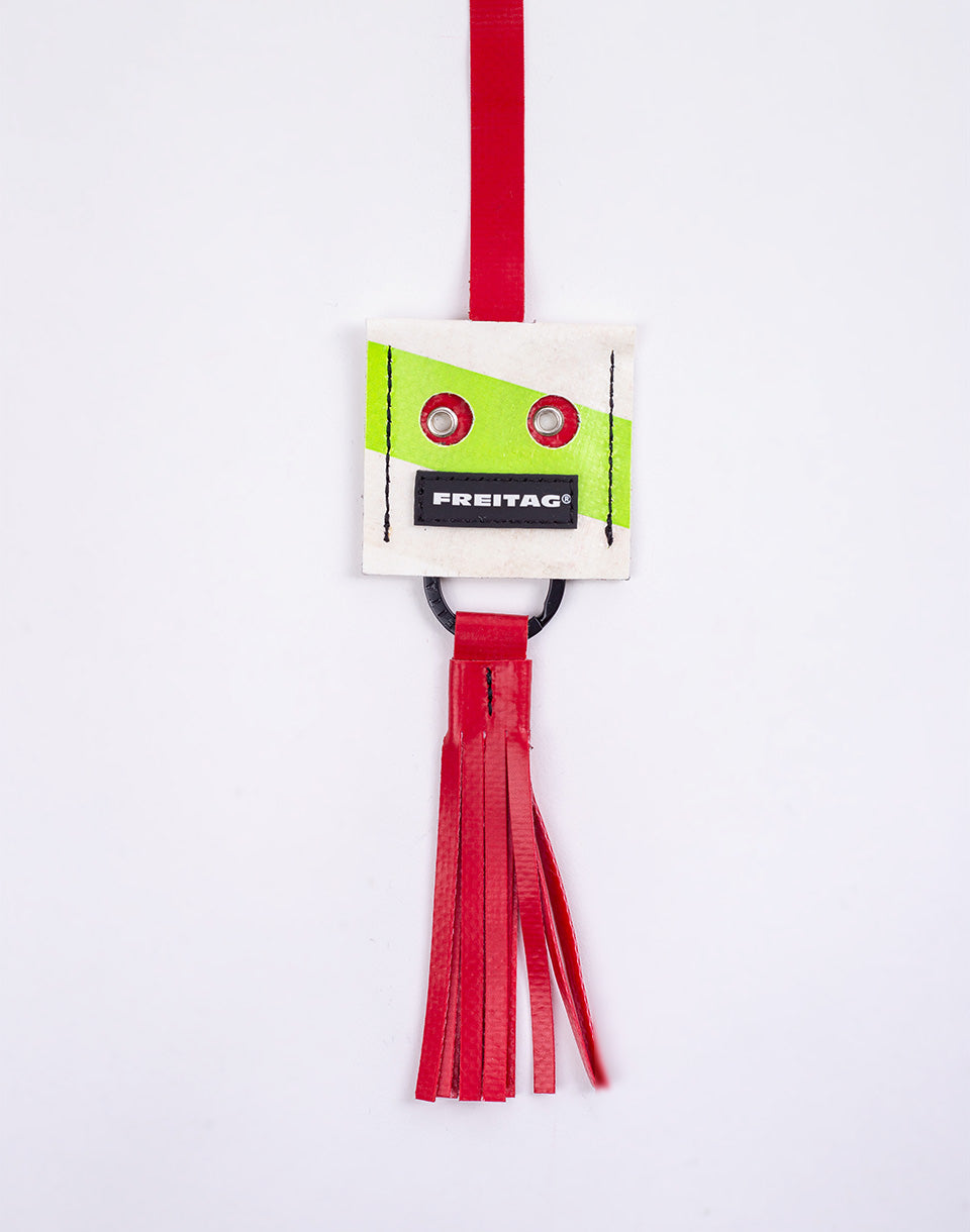 FREITAG Face - a playful and durable pendant that will take you anywhere. Each piece has its own expression and is made from recycled truck tarpaulin.