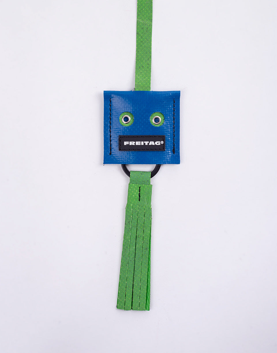 FREITAG Face - a playful and durable pendant that will take you anywhere. Each piece has its own expression and is made from recycled truck tarpaulin.