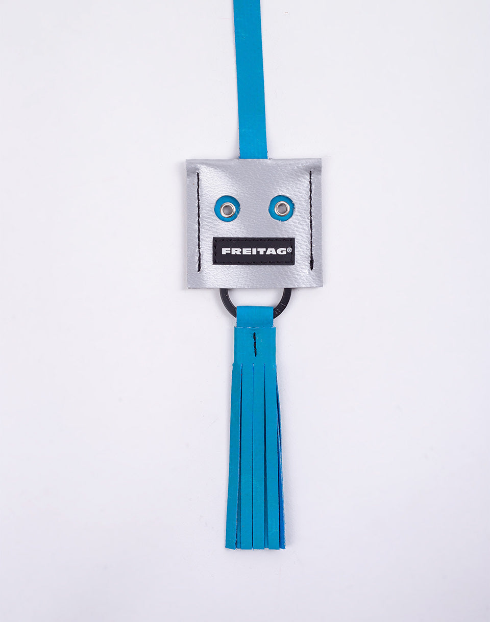 FREITAG Face - a playful and durable pendant that will take you anywhere. Each piece has its own expression and is made from recycled truck tarpaulin.