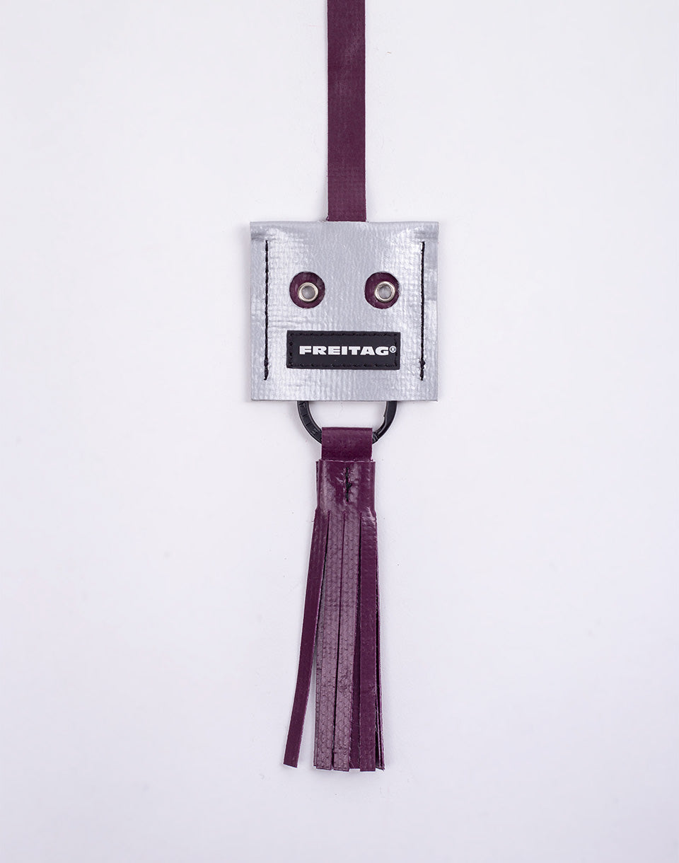FREITAG Face - a playful and durable pendant that will take you anywhere. Each piece has its own expression and is made from recycled truck tarpaulin.