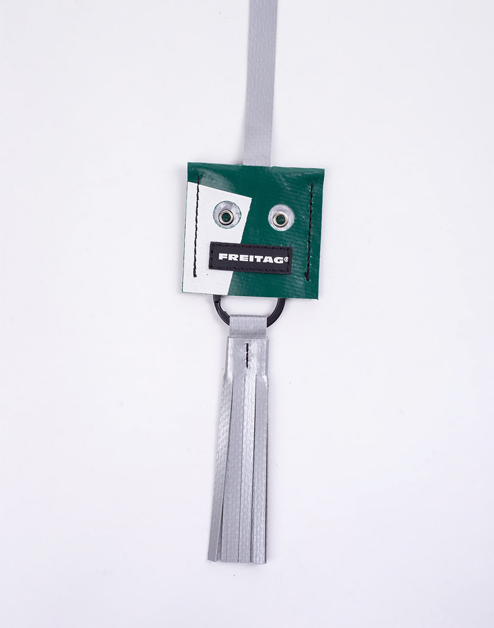 FREITAG Face - a playful and durable pendant that will take you anywhere. Each piece has its own expression and is made from recycled truck tarpaulin.