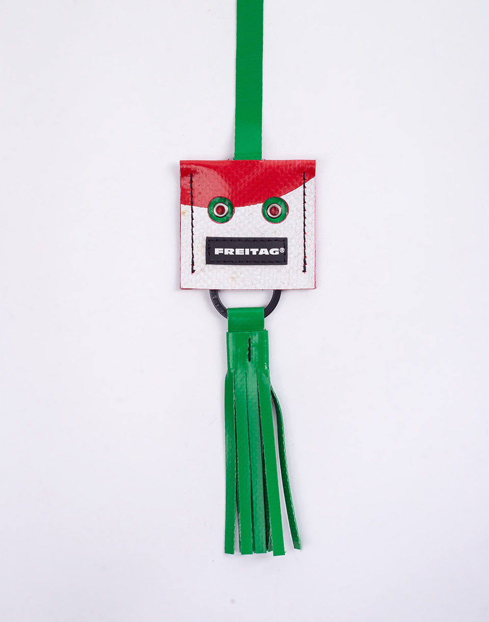 FREITAG Face - a playful and durable pendant that will take you anywhere. Each piece has its own expression and is made from recycled truck tarpaulin.
