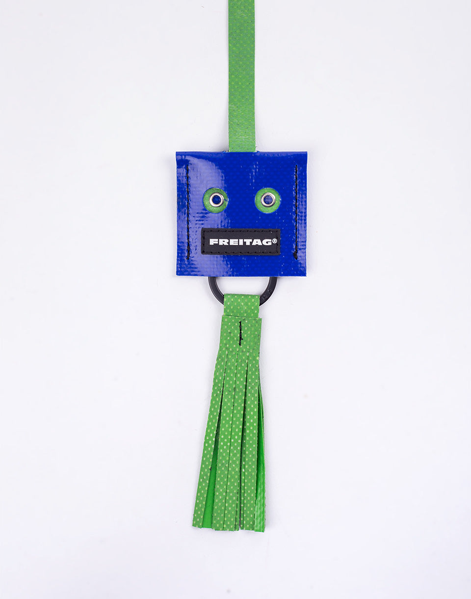 FREITAG Face - a playful and durable pendant that will take you anywhere. Each piece has its own expression and is made from recycled truck tarpaulin.