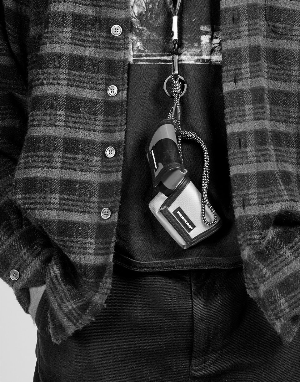 FREITAG Mini Messenger - a miniature homage to the classic FREITAG messenger bag, combining the function of a pendant and a mini pouch.
