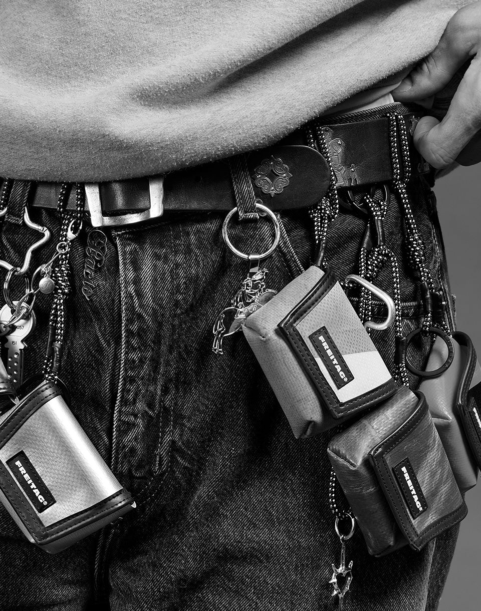 FREITAG Mini Messenger - a miniature homage to the classic FREITAG messenger bag, combining the function of a pendant and a mini pouch.