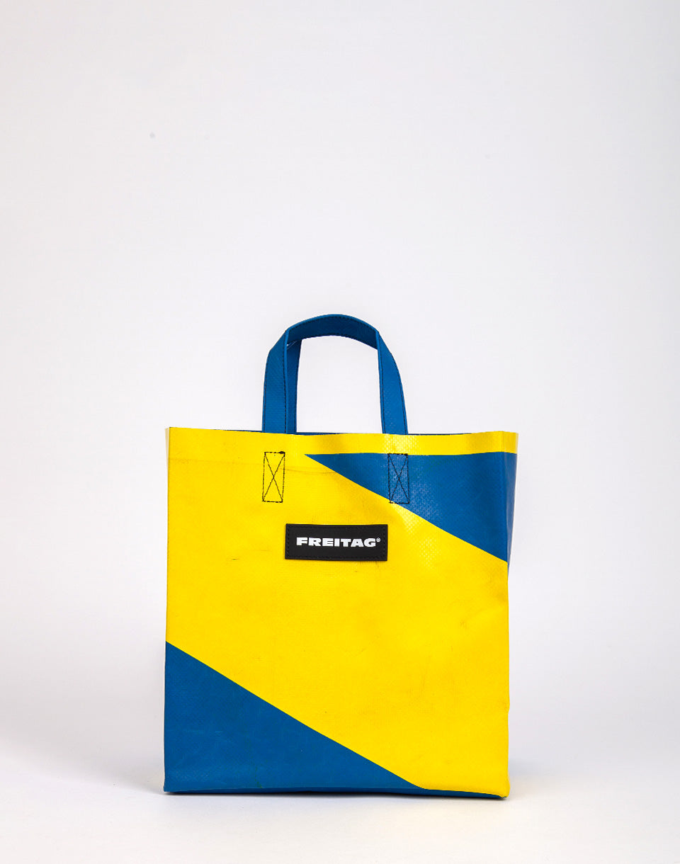 Freitag F250 Sonny - Le sac à provisions d'origine à base de voiles de camion recyclé, qui prend la forme d'un sac en papier classique, se replie confortablement dans un sac à dos et peut même transporter un grand achat.