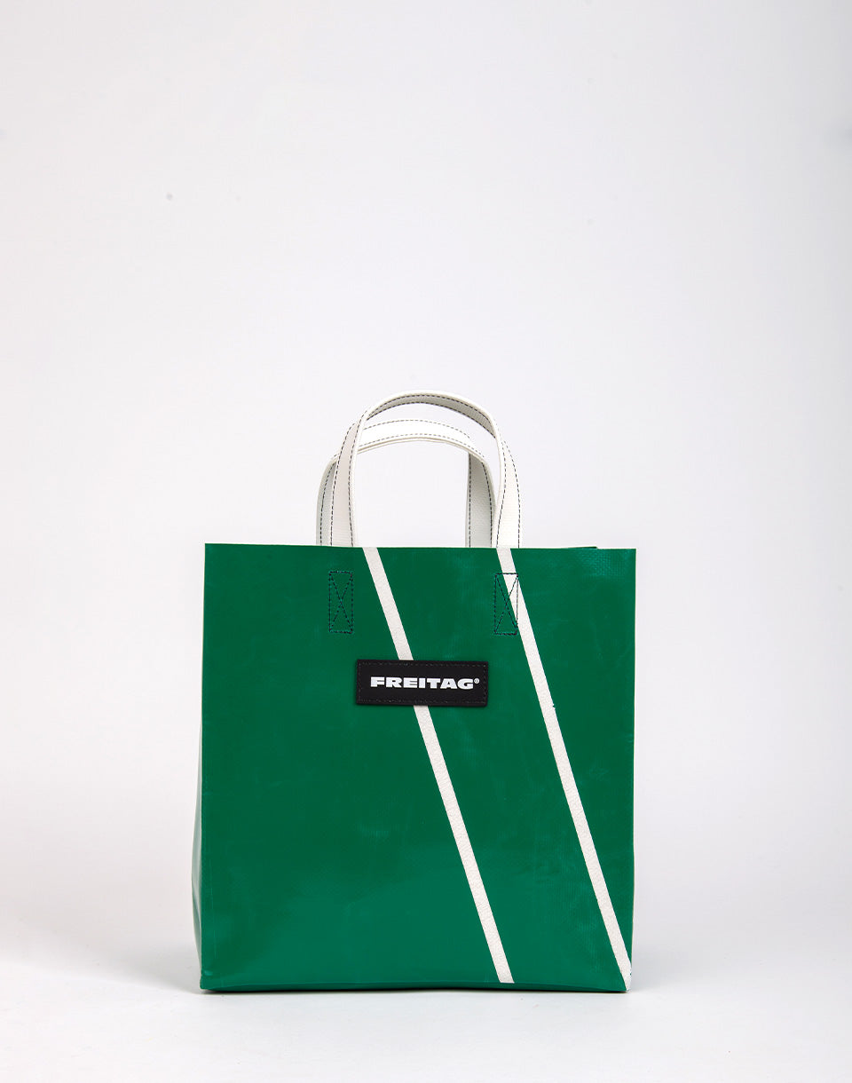 Freitag F250 Sonny - Le sac à provisions d'origine à base de voiles de camion recyclé, qui prend la forme d'un sac en papier classique, se replie confortablement dans un sac à dos et peut même transporter un grand achat.