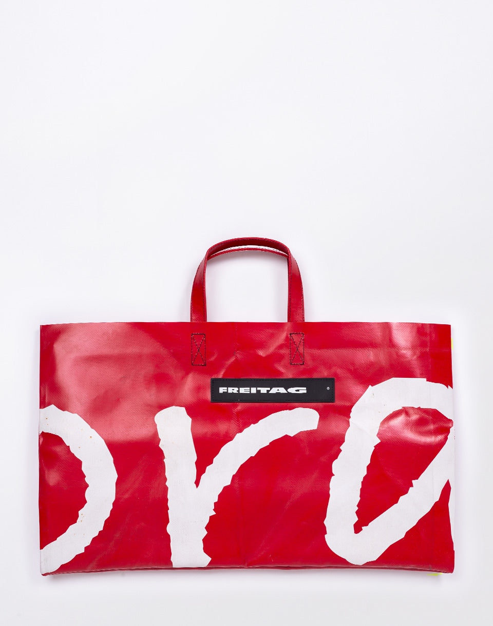 FREITAG F260 Miami Wide - un sac de courses unique fabriqué à partir de voiles de camion recyclées, qui s'inspire de l'apparence des sacs en papier classiques, mais sa largeur le rend incomparable.
