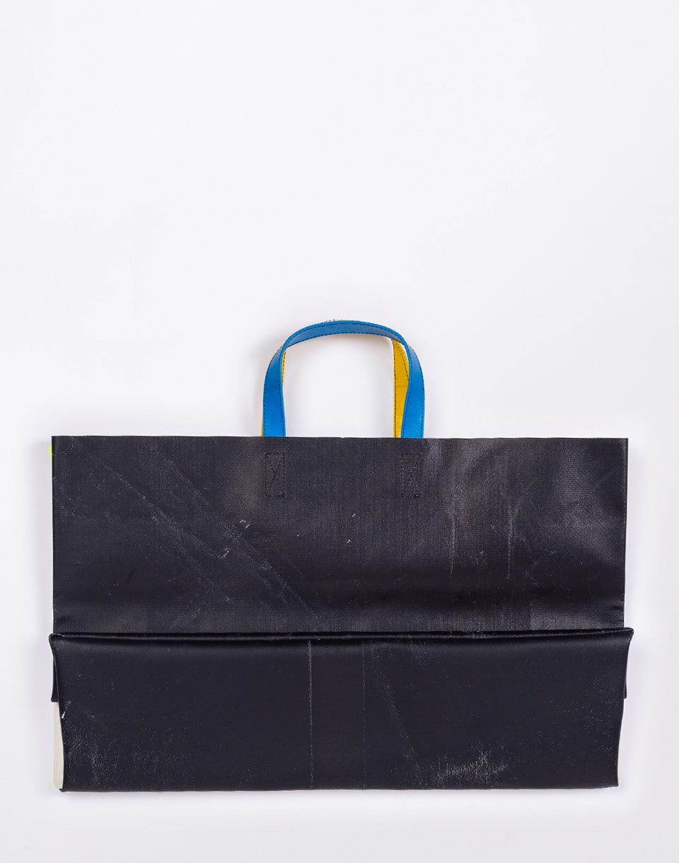 FREITAG 260 Miami Wide - un sac de courses unique fabriqué à partir de voiles de camion recyclées, qui s'inspire de l'apparence des sacs en papier classiques, mais sa largeur le rend incomparable.