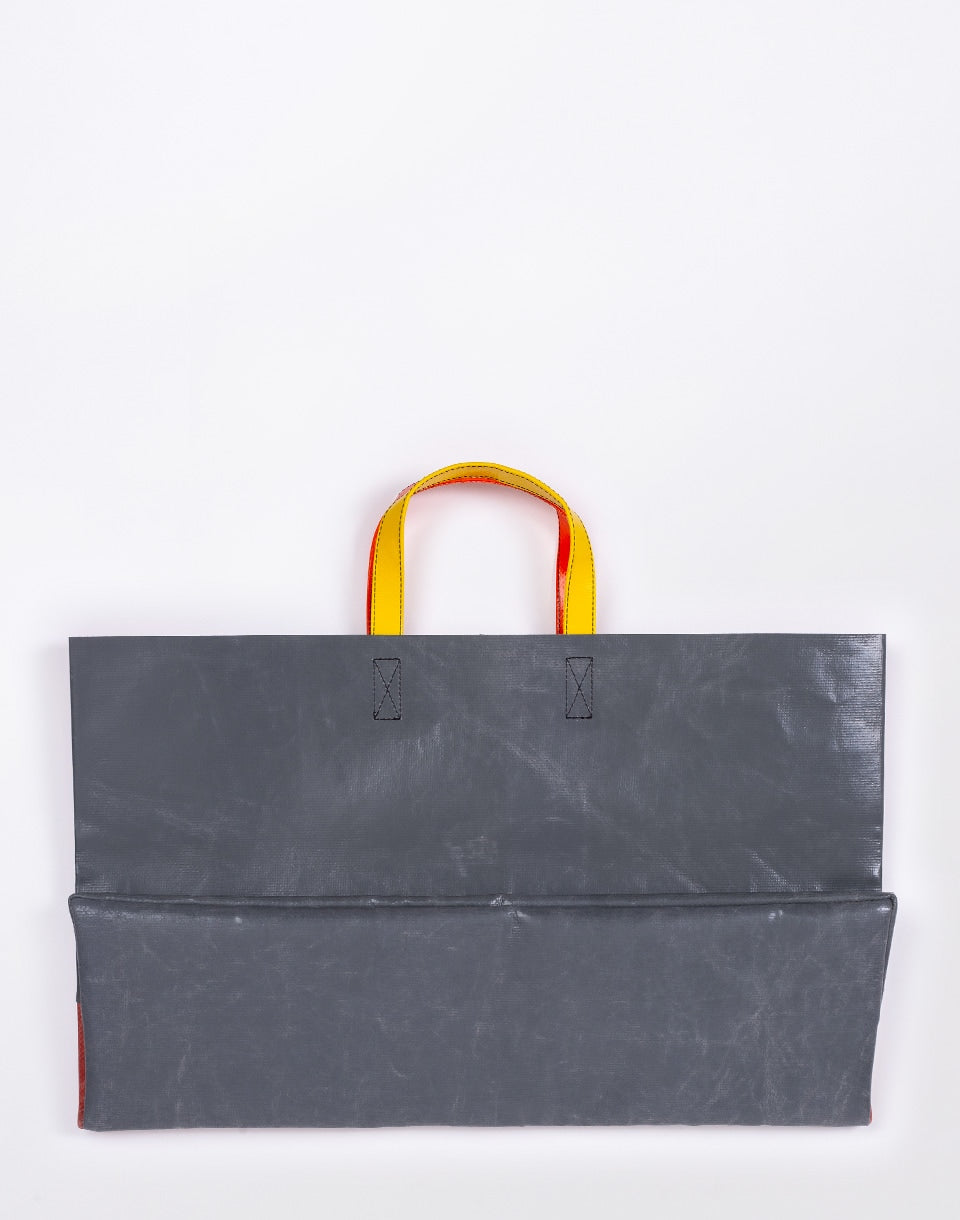 FREITAG F260 Miami Wide - un sac de courses unique fabriqué à partir de voiles de camion recyclées, qui s'inspire de l'apparence des sacs en papier classiques, mais sa largeur le rend incomparable.