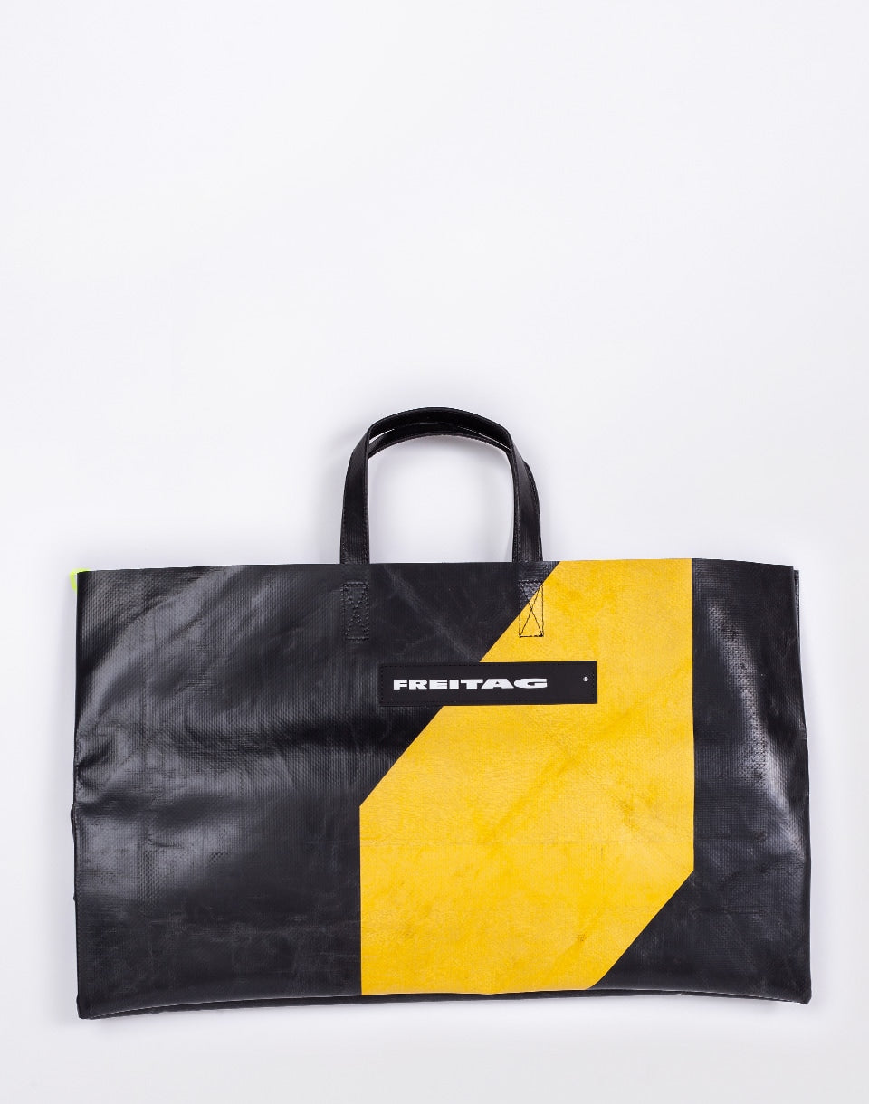 FREITAG 260 Miami Wide - un sac de courses unique fabriqué à partir de voiles de camion recyclées, qui s'inspire de l'apparence des sacs en papier classiques, mais sa largeur le rend incomparable.